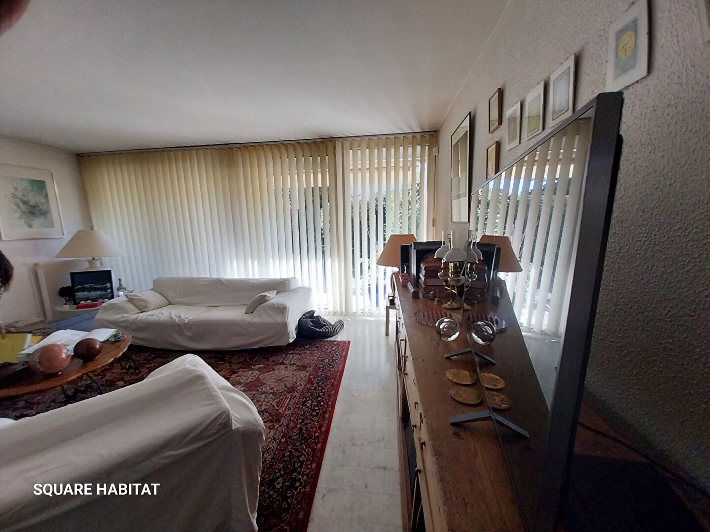 Ouverture sur le parc résidentiel, renforçant la sensation d'espace et de nature.