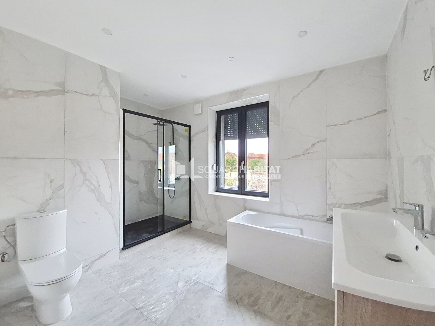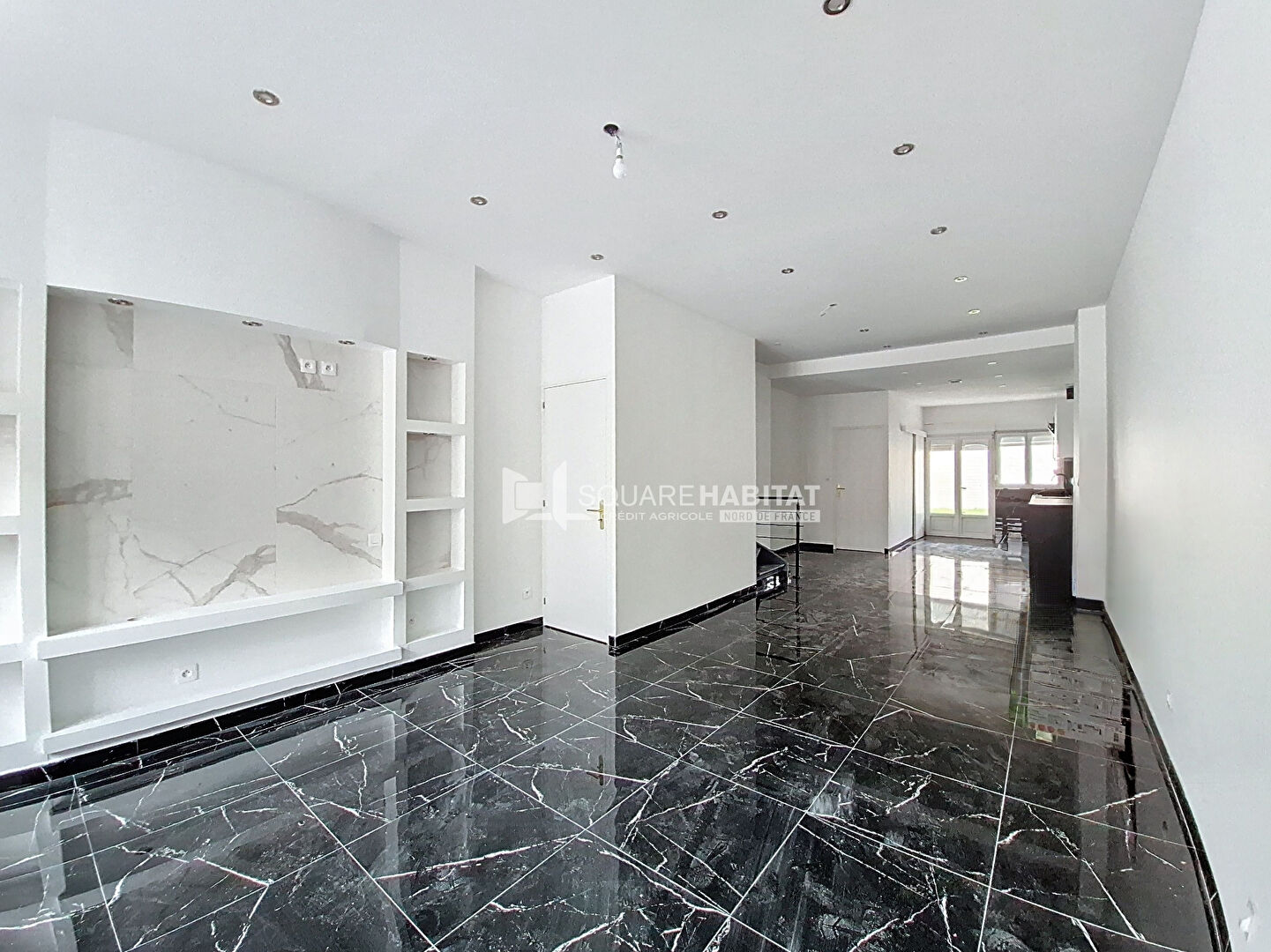 Secteur du Flocon - Square Habitat Tourcoing Roussel vous propose cette maison de 105 m² habitables intégralement rénovée proposant un rez-de-chaussée complètement ouvert avec séjour et cuisine équipée ainsi qu'un WC et une buanderie ; au premier étage on trouve une salle de bains comprenant baignoire, douche, second WC, et une chambre de 13.5 m² ; au second étage2 chambres de 16.5 m² et 11.5 m². Un jardin de vielle d'environ 40 m² complète la prestation. Niveau technique : double vitrage PVC très récent, chambres parquetées , salle de bains et cuisine qui n'ont jamais servi. Le plus : la localisation proche du tramway, des écoles, d'un parc de jeux et de la voie verte.