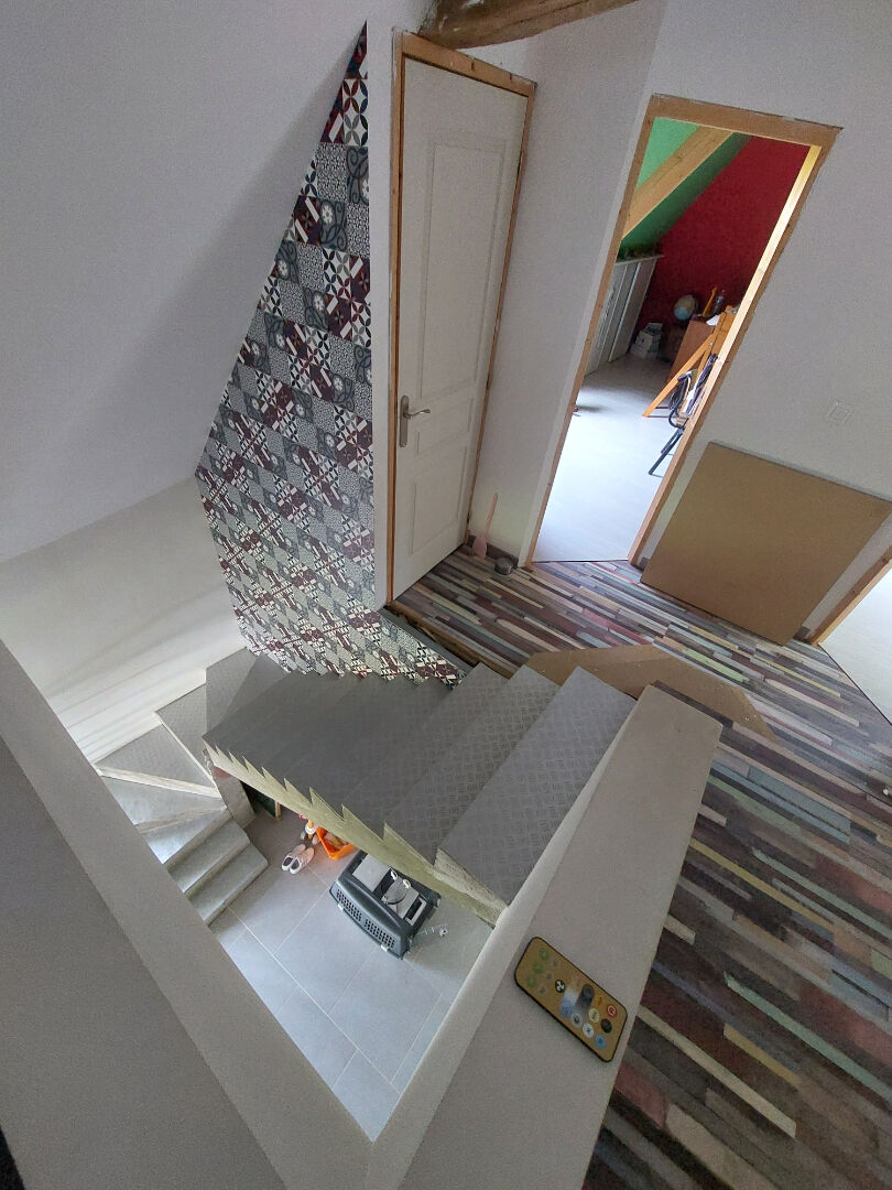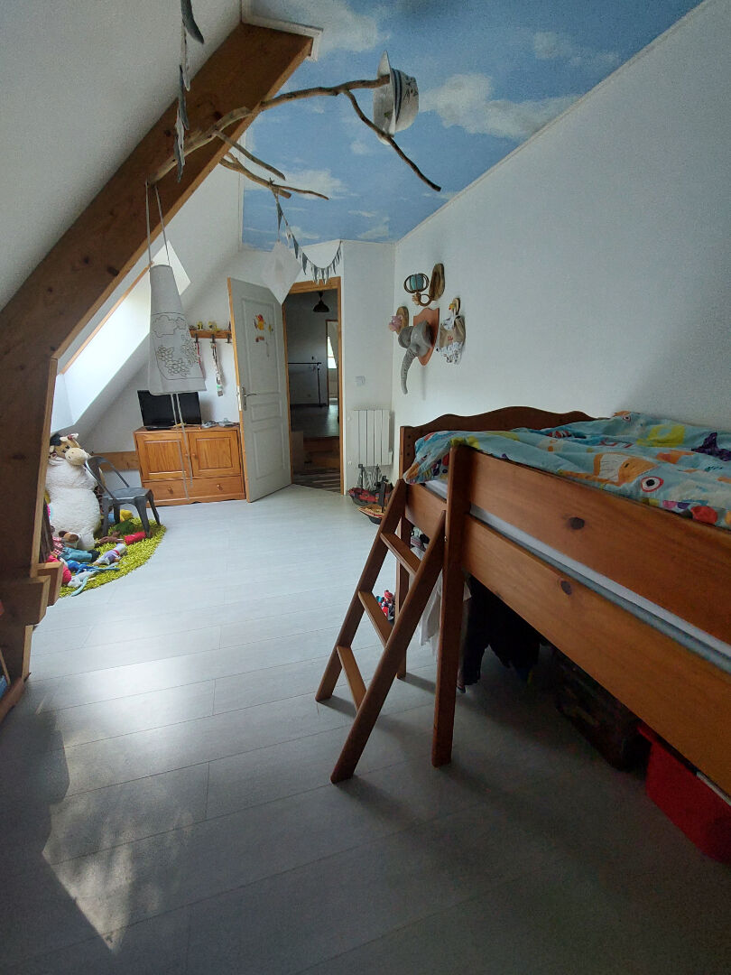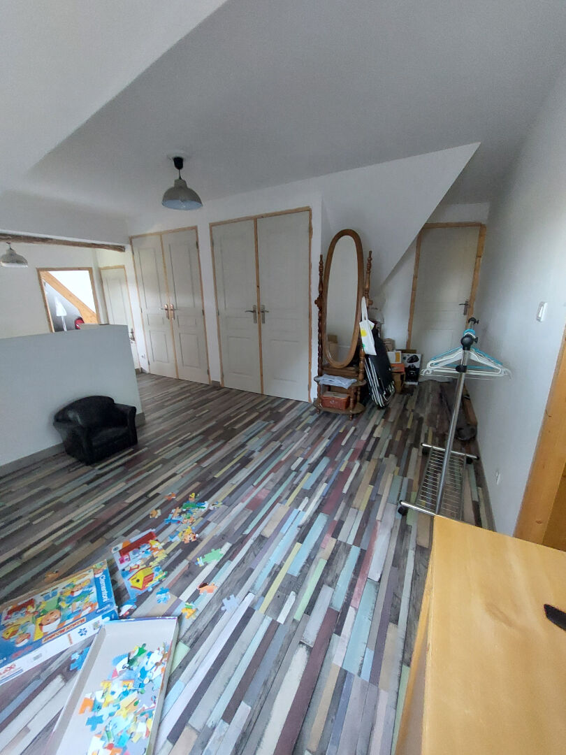A l'étage vous trouverez une pièce palière avec de grands placards, 3 chambres, une salle d'eau avec WC.