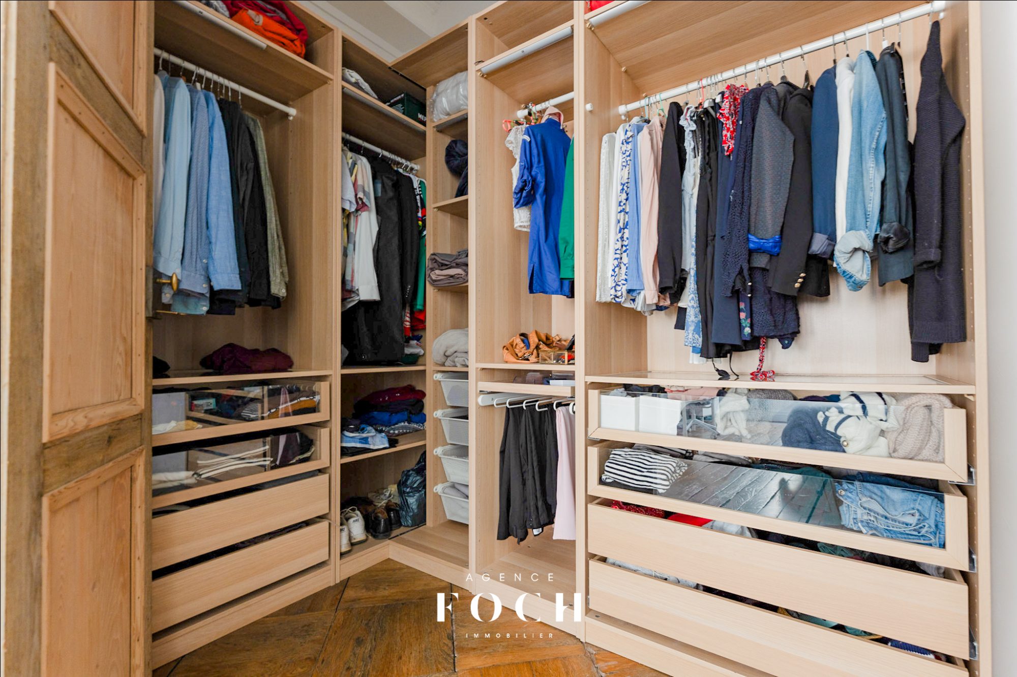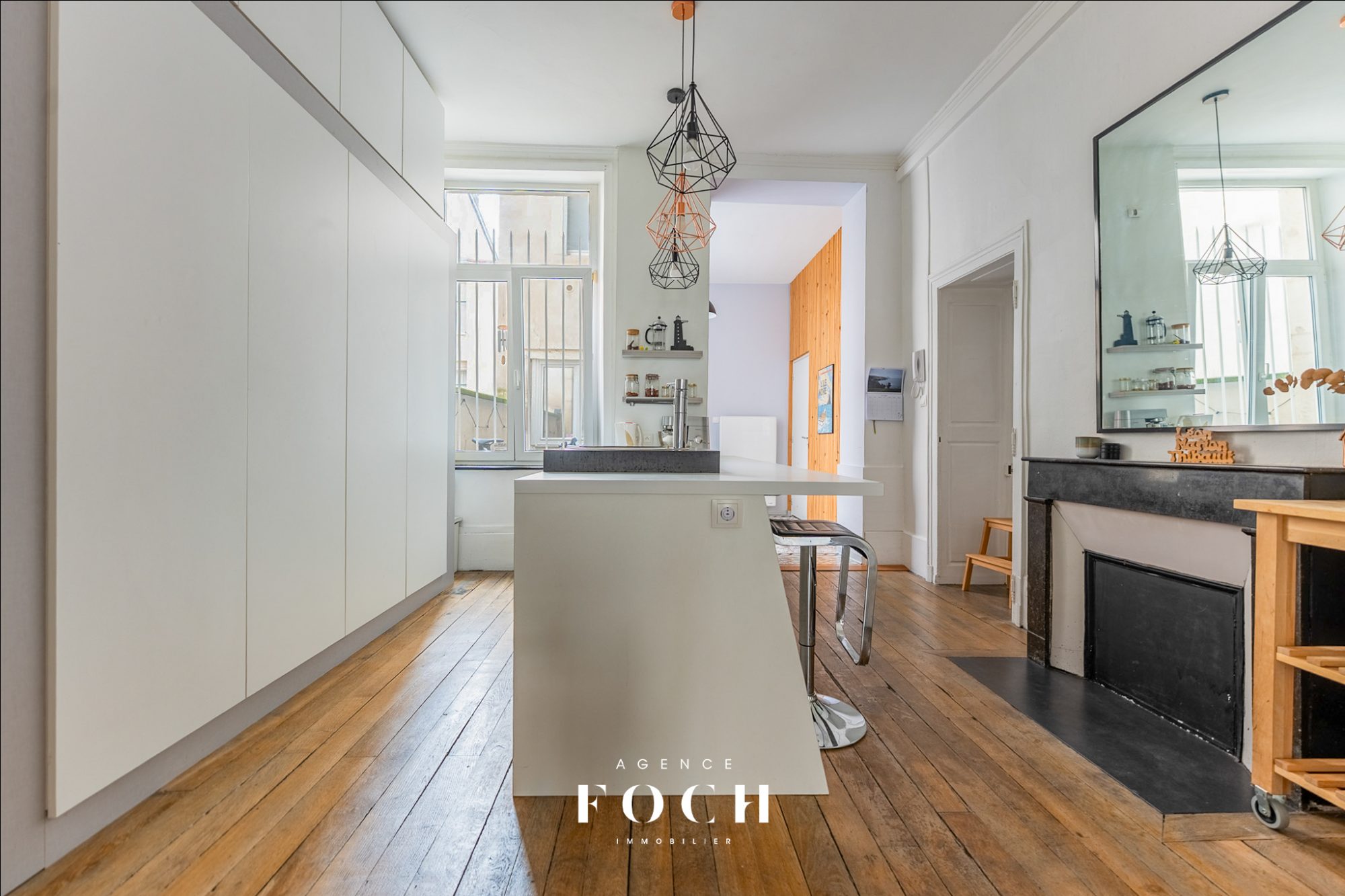 Le caractère de l'ancien, avec ses cheminées, parquets et moulures, se mêle harmonieusement au éléments modernes, et confère à cet appartement un charme rare.