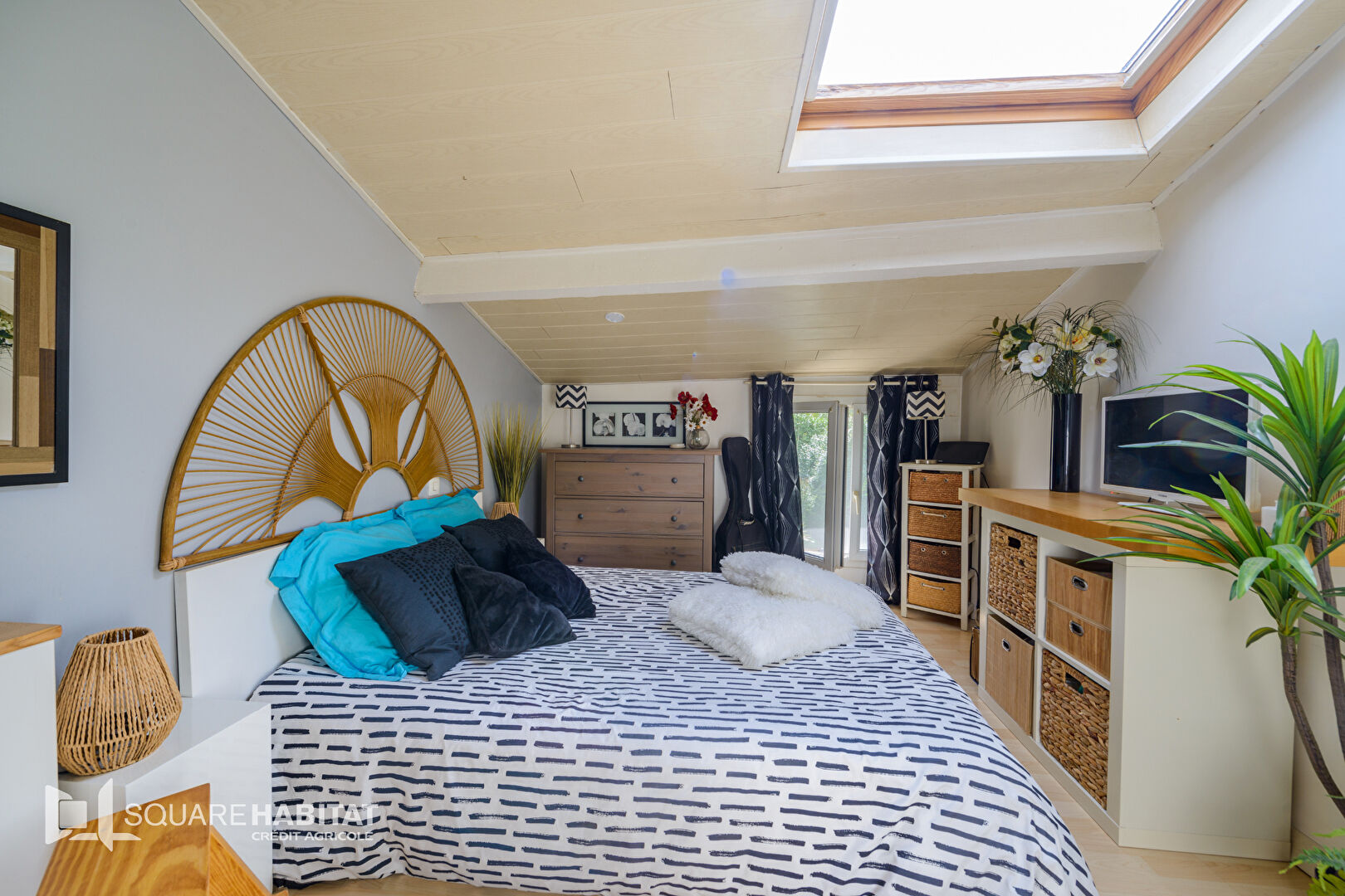 Au niveau inférieur : un salon lumineux ouvrant sur une terrasse privative, une deuxième chambre avec salle d'eau