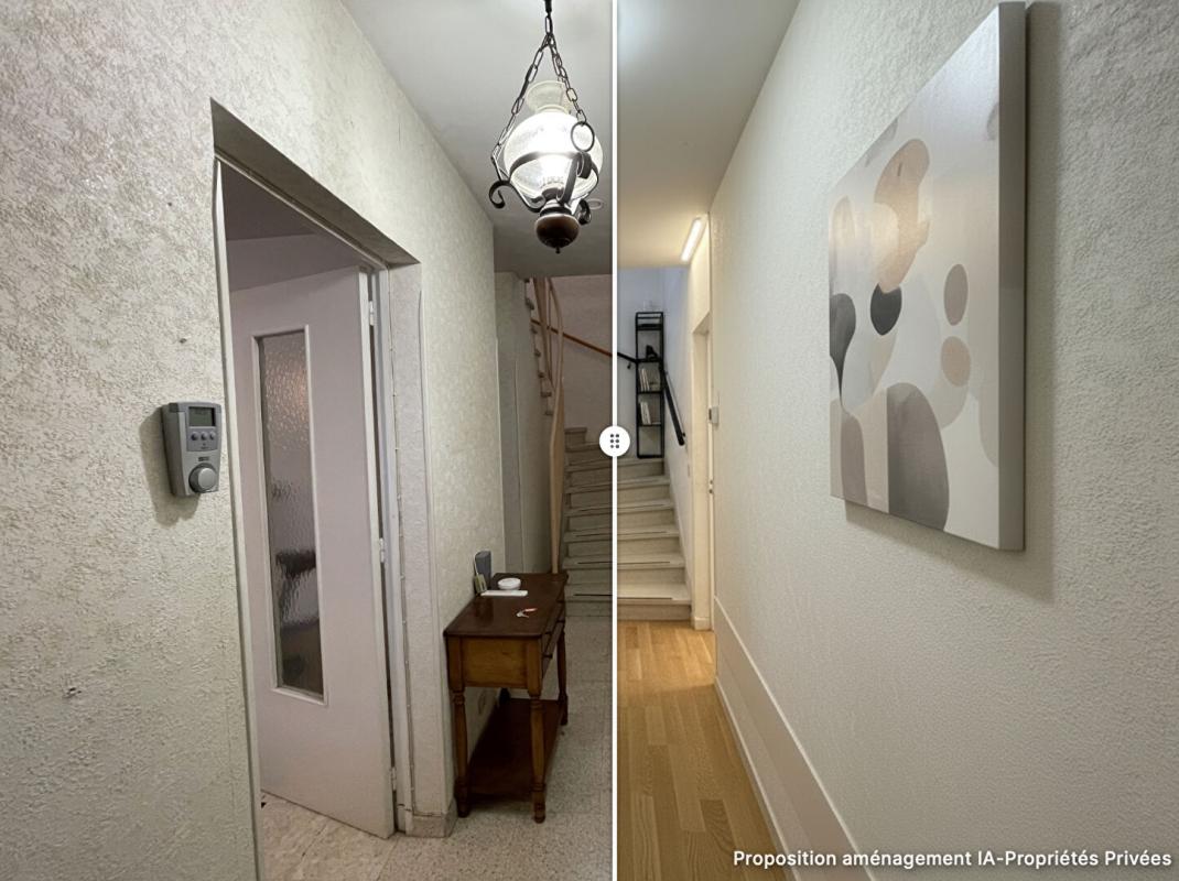 La maison nécessite des travaux de rafraichissement et de personnalisation pour la mettre au gout du jour. Voir proposition d'aménagement "avant/après" en faisant défiler les photos.