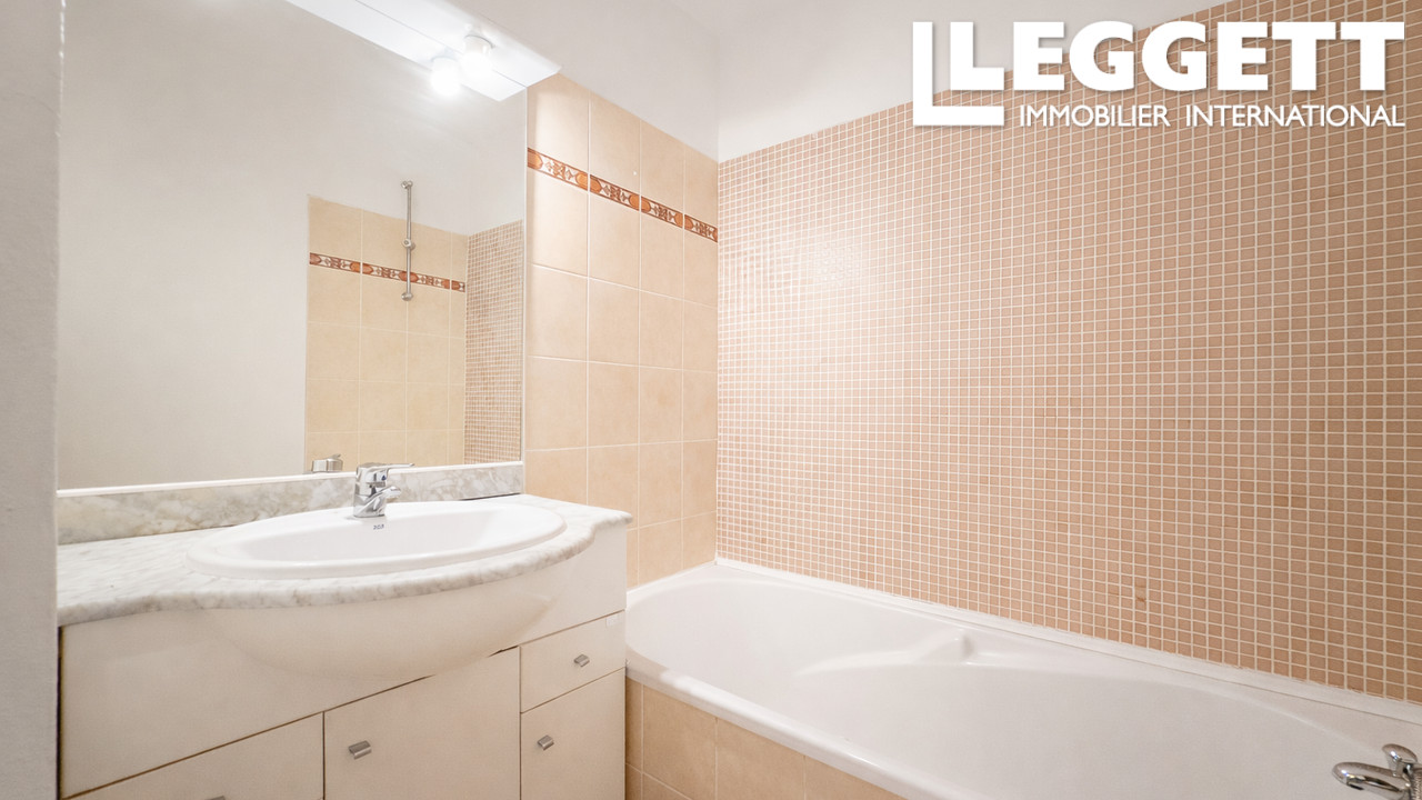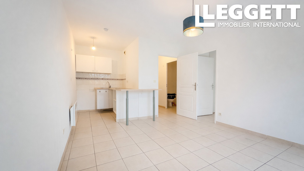 A40471DAL34 - Situé à proximité des Arènes de Béziers, ce lumineux appartement d'une chambre se trouve dans un immeuble moderne. Il offre un séjour ouvert avec coin cuisine, donnant sur un grand jardin et une terrasse pavée. La chambre donne également sur le jardin et dispose d'un placard intégré. La salle de bains comprend une baignoire avec douche, un lavabo et un WC. Chauffage électrique, fenêtres double vitrage et volets.