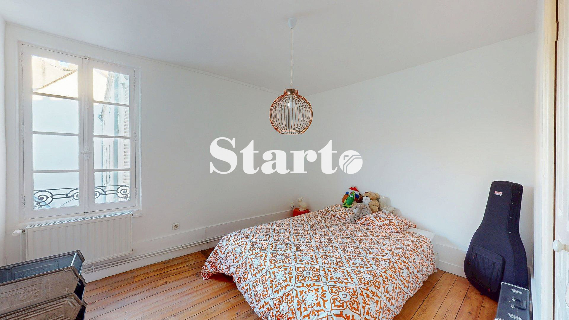 Ce dernier permet, dans un premier temps, l'accès à deux chambres généreuses, idéalement orientées et en retrait de la rue, sur cour, dont une disposant d'un placard intégré. Dans un second temps, le salon se dévoile, innondé de lumière par ses trois grandes ouvertures laissant apparaître un grand dégagement, unique à Dijon, de la rue Musette jusqu'à la place François Rude, puis la rue de la Liberté.