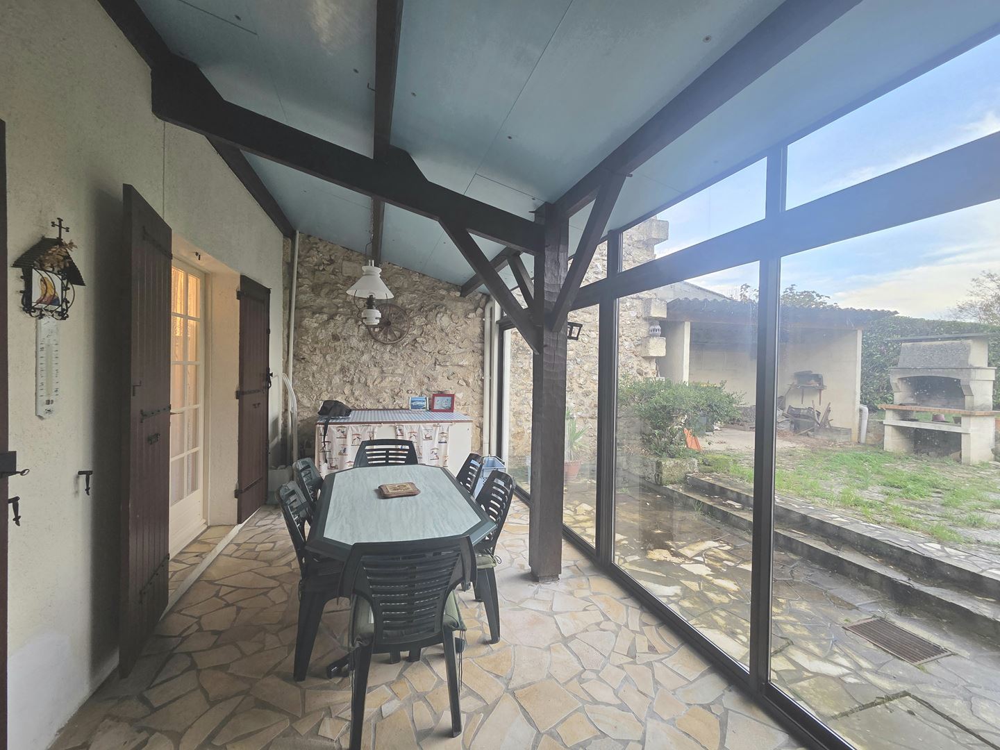 Pour finir un grand garage attenant de 80 m2 avec un jardinet.
