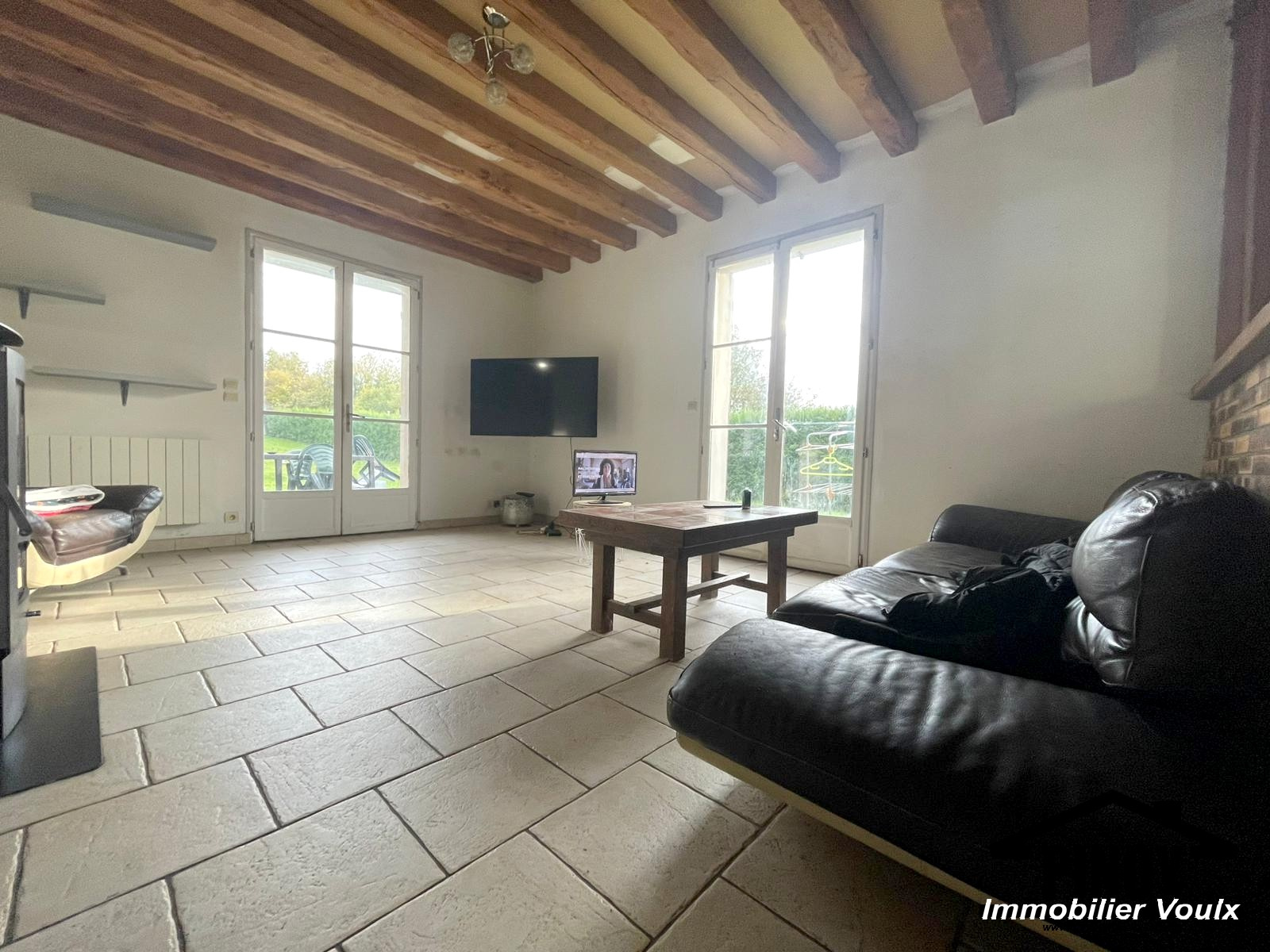 - Un espace de vie de 64m2 environ, lumineux. Salon et salle à manger semi-ouverte offrant une pièce de vie de 64 m2 avec poutres apparentes et accès direct au jardin. La cuisine équipée, moderne et fonctionnelle, offre un agréable espace repas avec vue sur le jardin. .
