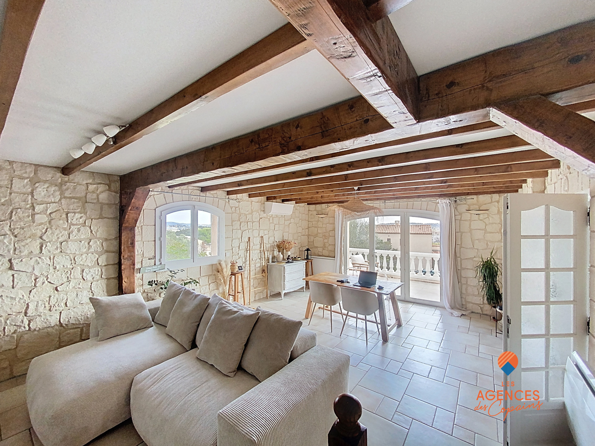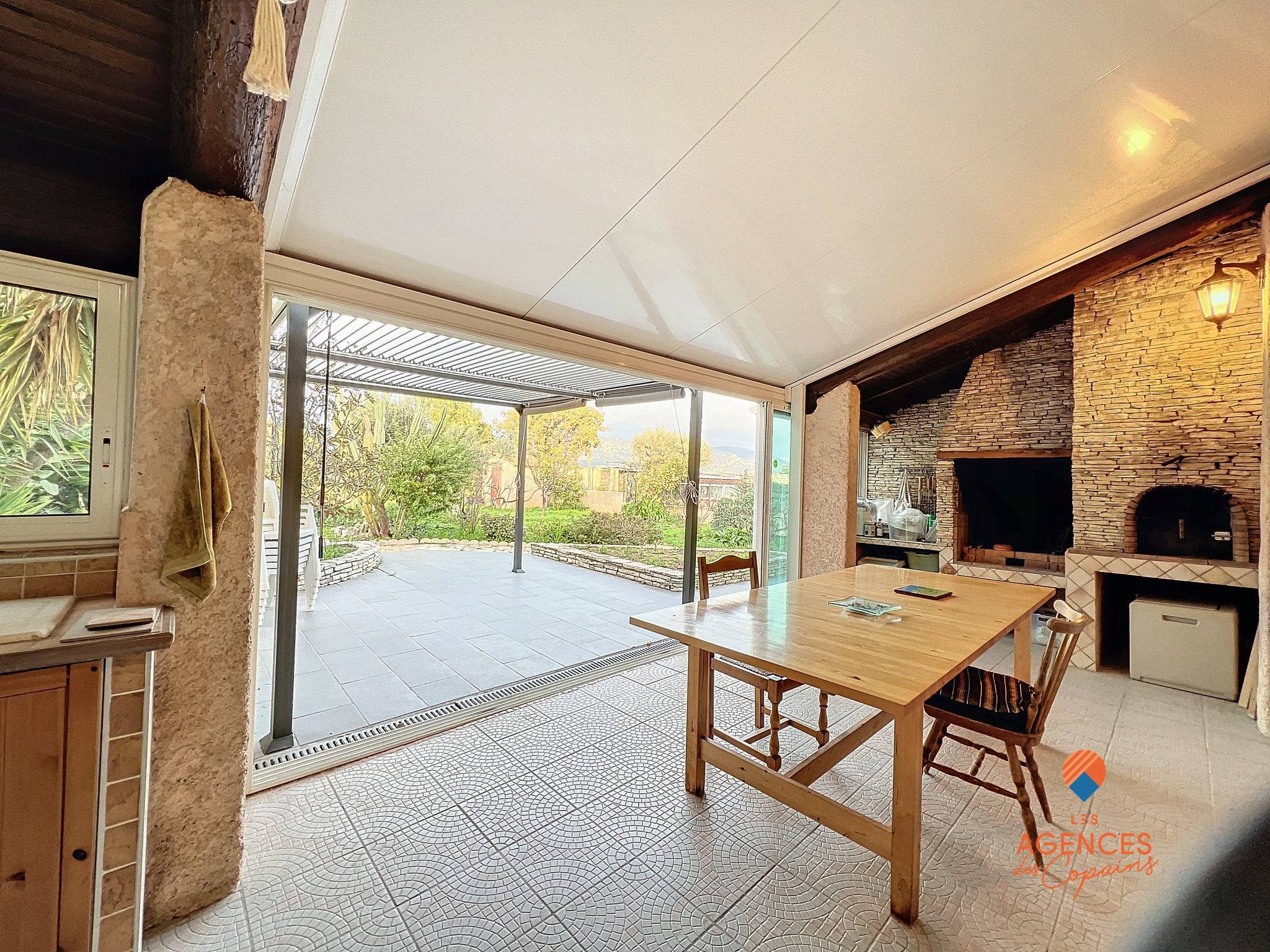 LA SEYNE SUPERBE VUE MER JOLIE VILLA T5 4 CHAMBRES, vaste salon séjour ouvrant sur terrasse avec vue mer, grande cuisine équipée, salle d'eau + salle de bains, 2 WC, grande véranda avec cuisine d'été et four à bois ouvrant sur jardin avec arbres fruitiers, très grand garage, climatisation réversible, calme absolu