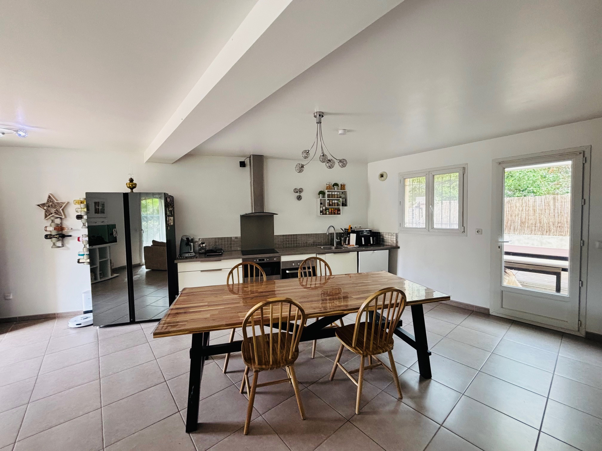Au rez-de-chaussée, vous profiterez d'une lumineuse pièce de vie avec cuisine américaine équipée, ainsi qu'un cellier pratique pour vos rangements.