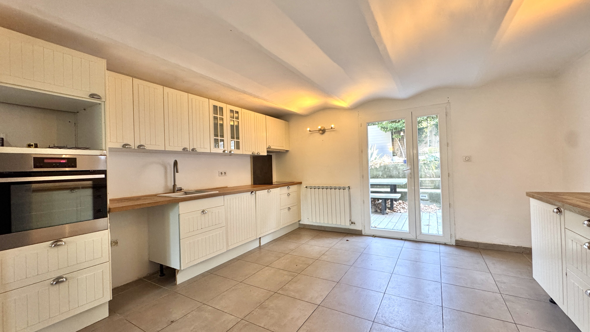Cette maison aux beaux volumes de 1920 entièrement rénovée vous offre en rez-de-chaussée un vaste espace à vivre salon-séjour et cuisine US aménagée équipée donnant sur terrasse, jardin et piscine.