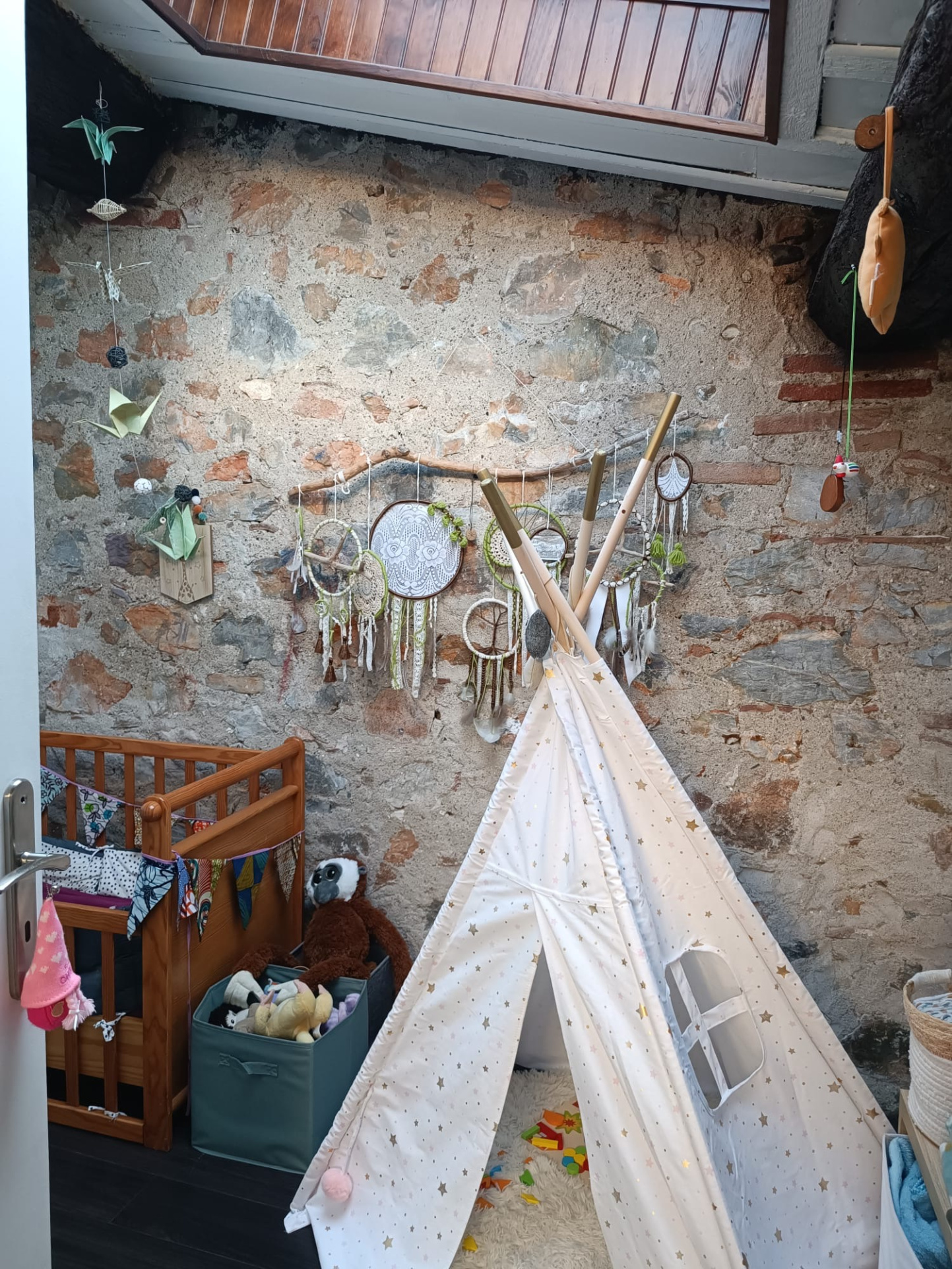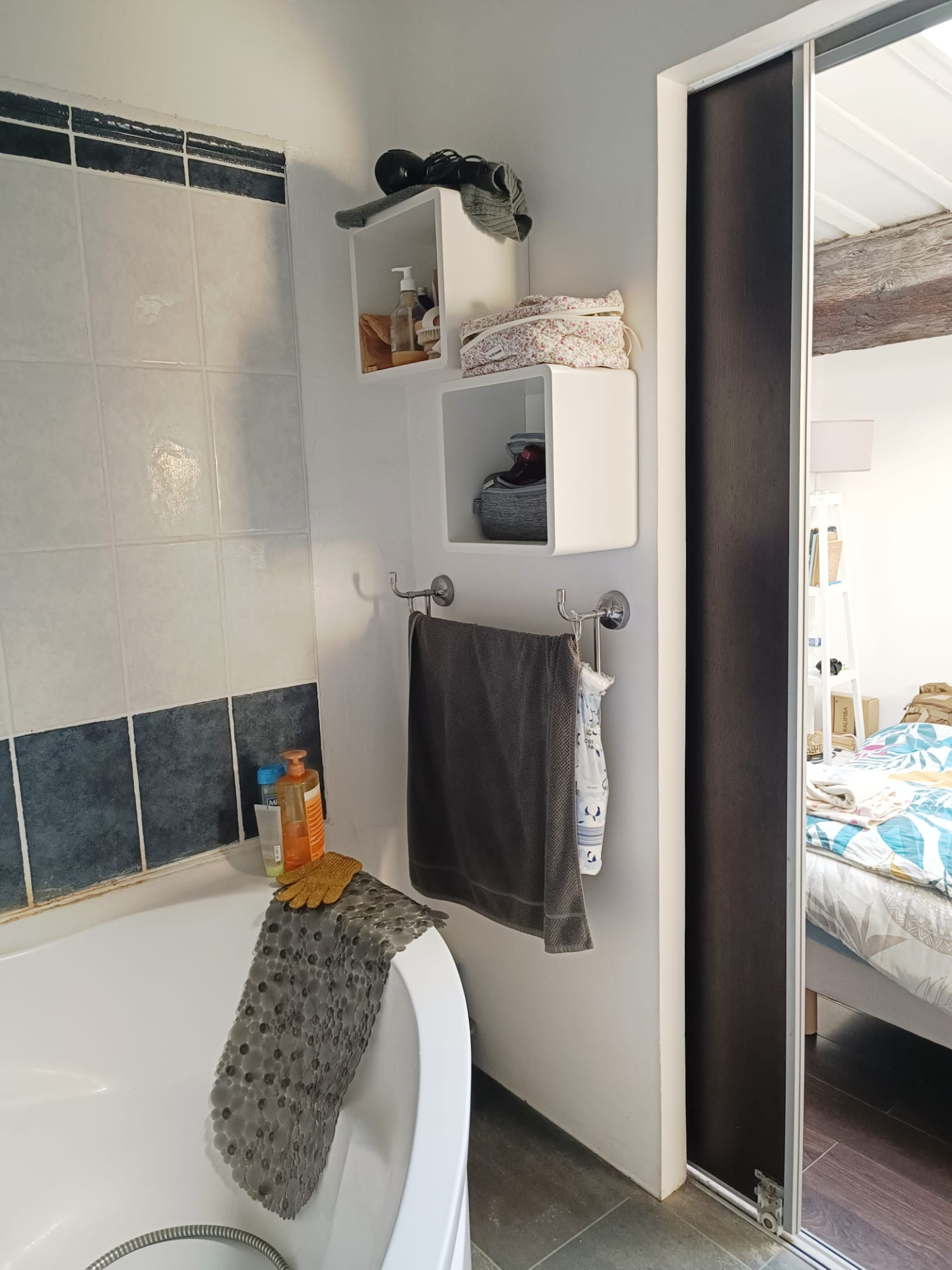 Elle se compose d'un salon-séjour lumineux avec cheminée, d'une cuisine ouverte entièrement équipée, de trois chambres dont une au rez-de-chaussée, d'une salle de bain à l'étage et d'une salle d'eau au rez-de-chaussée.