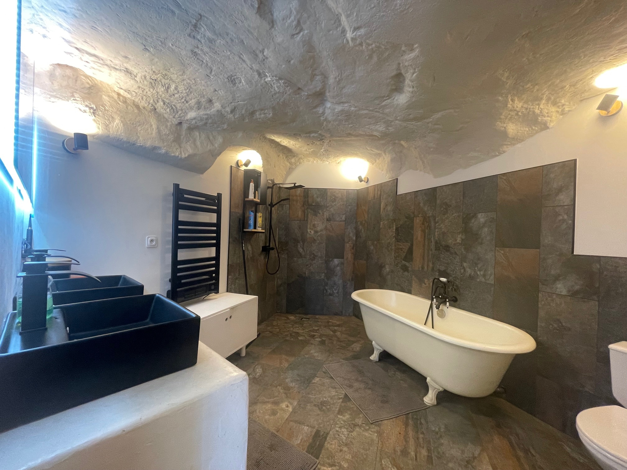 PLESSIS IMMOBILIER vous propose cette maison semi-troglodyte de 133 m2 habitables, ou l'authenticité des poutres apparentes et le caractère troglodytique confèrent un charme incomparable. Le rez-de-chaussée se compose d'une vaste pièce de vie lumineuse, sublimé par ses volumes généreux, intégrant une cuisine ouverte, aménagée et équipée. Une chambre de plain-pied ainsi qu'une salle d'eau indépendante avec WC complètent ce niveau. A l'étage, vous trouverez deux chambres supplémentaires, dont une suite parentale avec salle d'eau privative, offrant confort et intimité. A l'exterieur, une cour de plus de 40 m2, rare pour ce type de bien, permet de profiter d'un espace convivial en toute tranquillité.Possibilité d'acquérir environ 100m2 de parcelle et caves troglodytes.