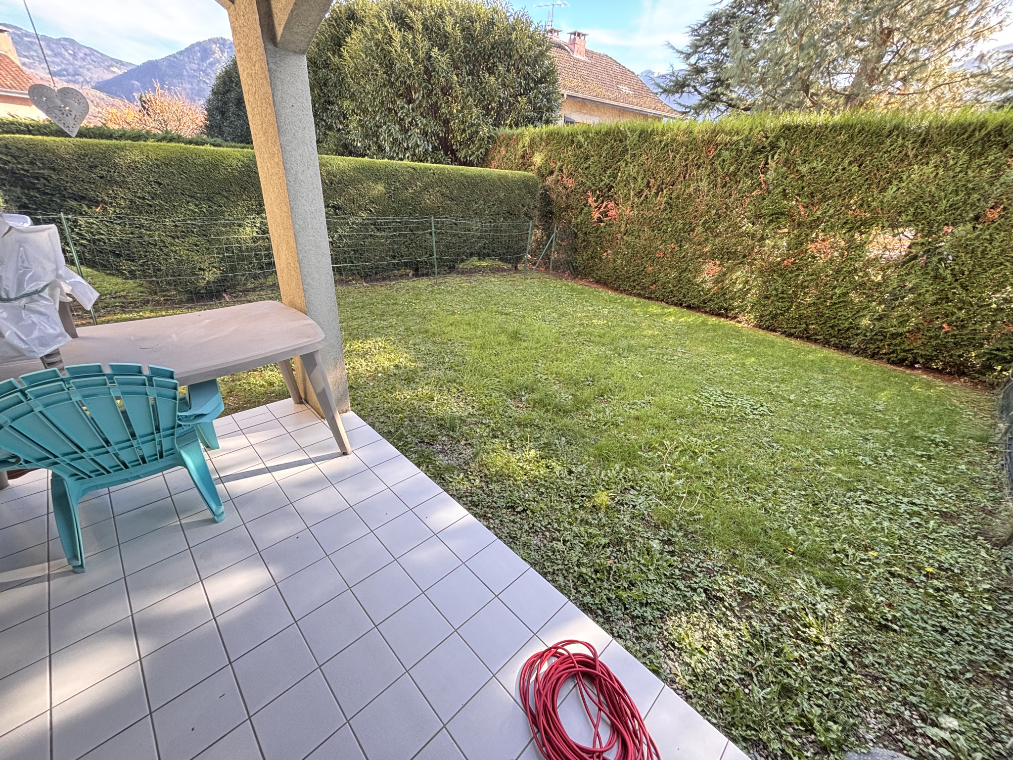 EN EXCLUSIVITE 4807 - Appartement T2 situé sur la commune de Thyez comprenant : une entrée avec placard, un spacieux séjour avec cuisine équipée, terrasse et jardin, une chambre avec placard, une salle de bains recement rénovée ainsi qu'un toilette individuel.