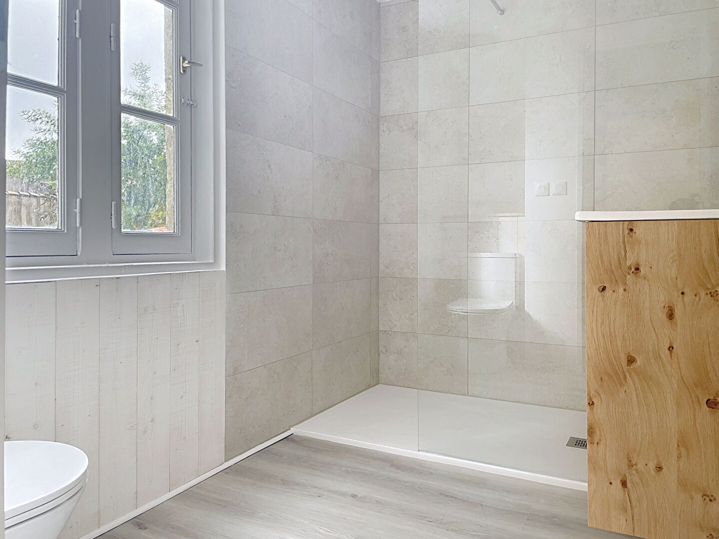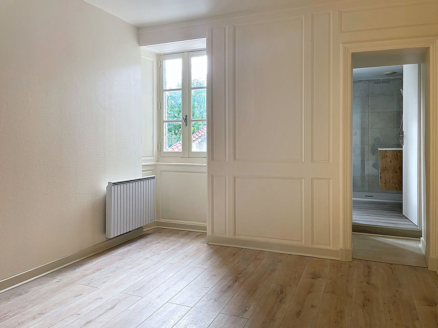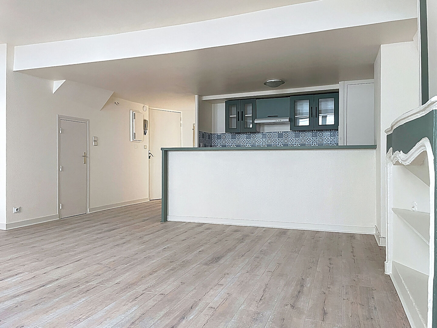 Situé au 1er étage d'un petit immeuble de caractère, ce grand T2 comprend : Une belle pièce de vie de 34 m² avec de grandes ouvertures, une cuisine ouverte aménagée, une chambre au calme donnant sur une cour arrière arborée, une salle d'eau moderne avec wc.