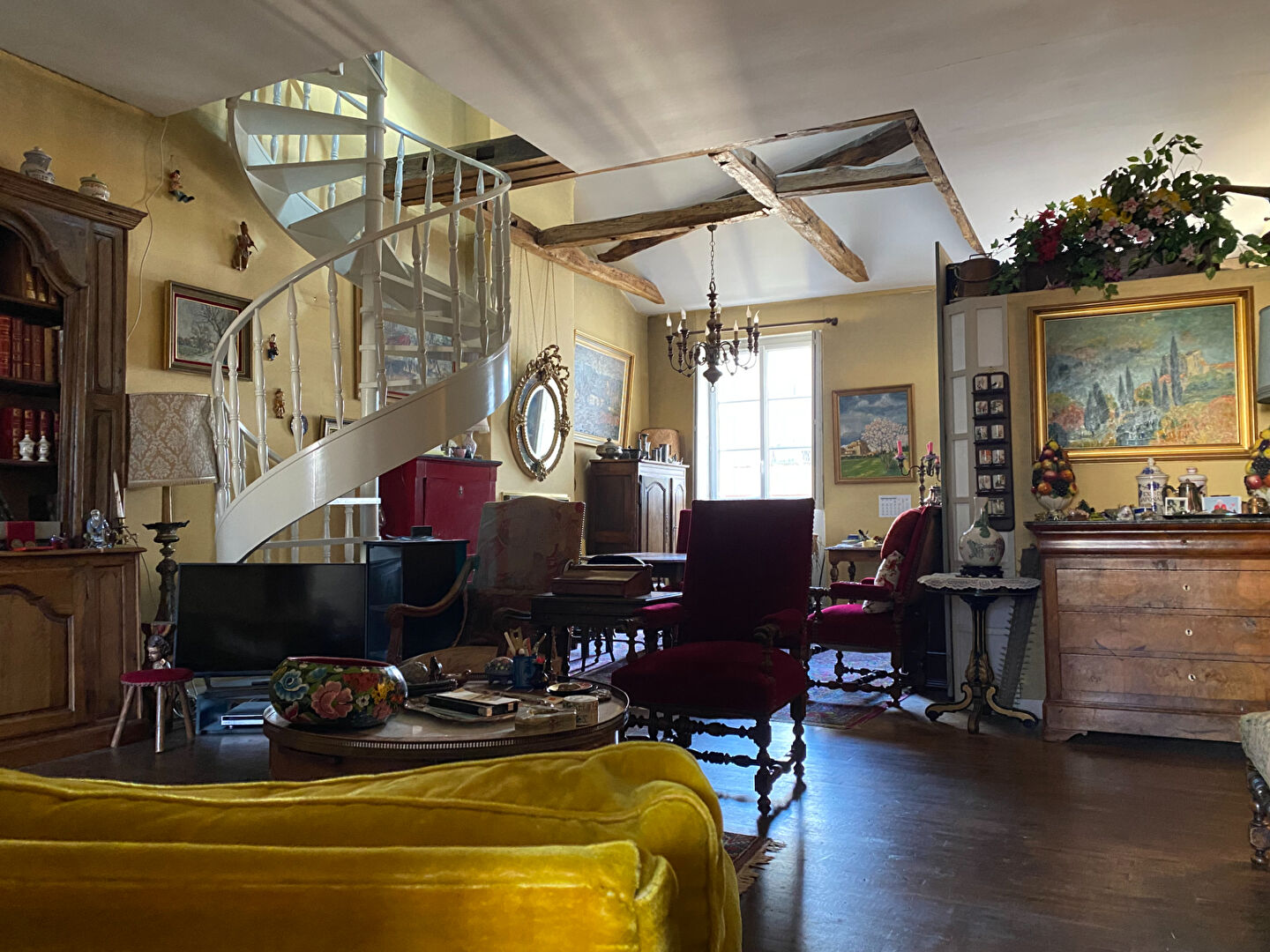 Les espaces privatifs présentent un cachet qui ne demandera qu'à être rafraichit: trois belles chambres, une salle de bains, une salle de douche et un grand salon séjour de 47m² environ et son coin cuisine.