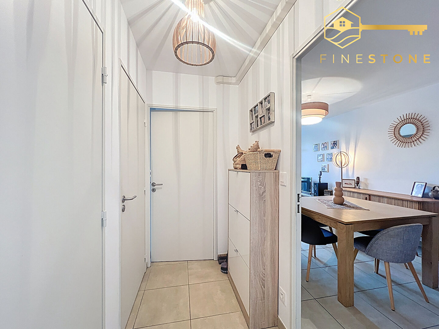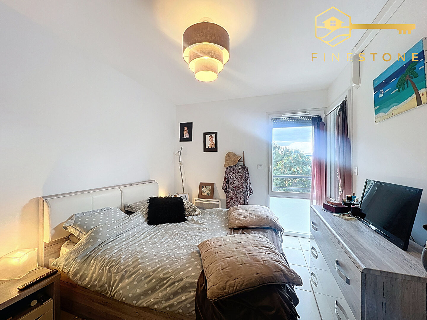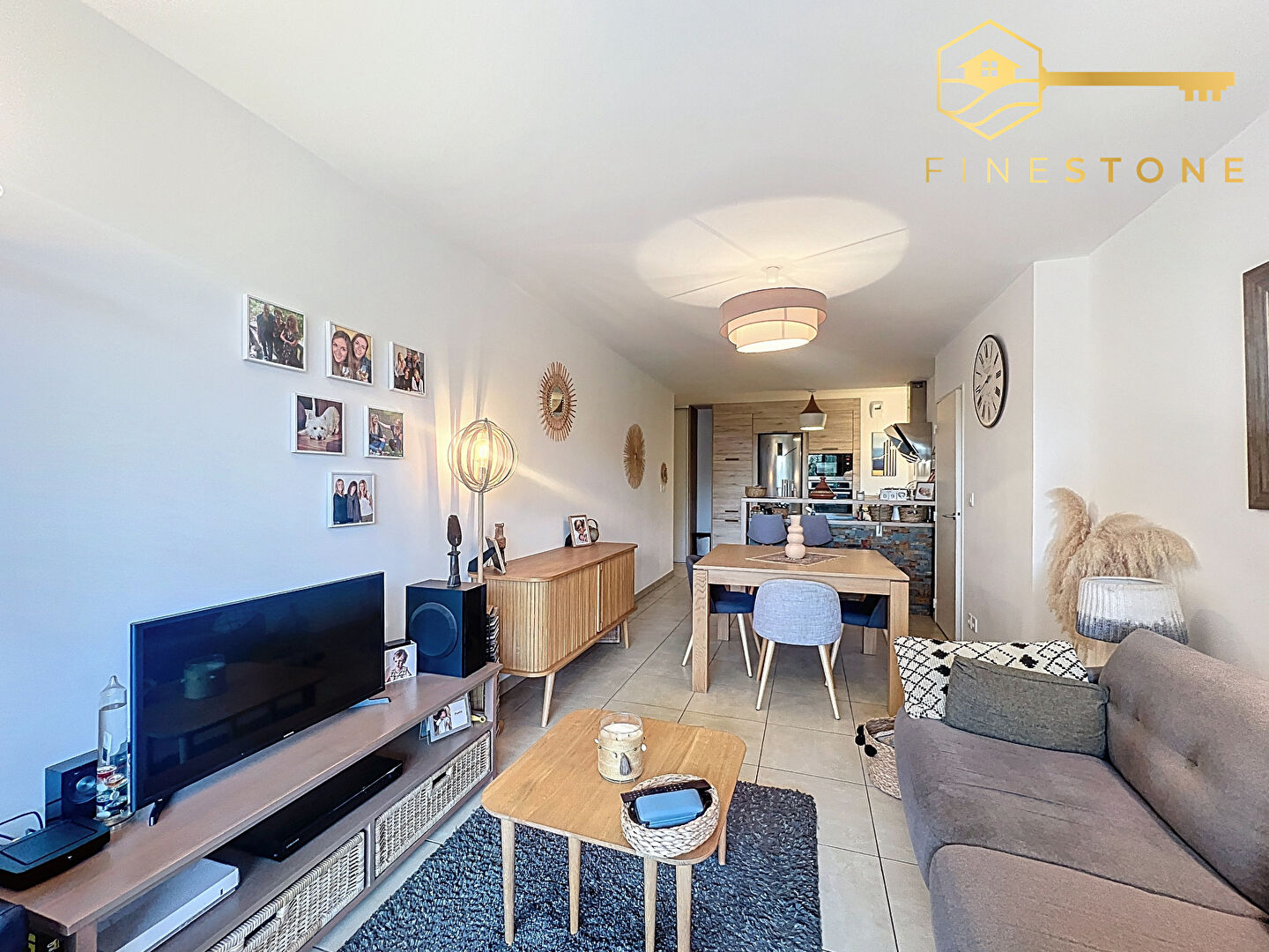 L'intérieur comprend une cuisine américaine aménagée et équipée, un séjour spacieux de 22 m², ainsi qu'une salle d'eau moderne et un WC indépendant . L'entrée propose une hall avec placard aménagé. L'appartement est climatisé !