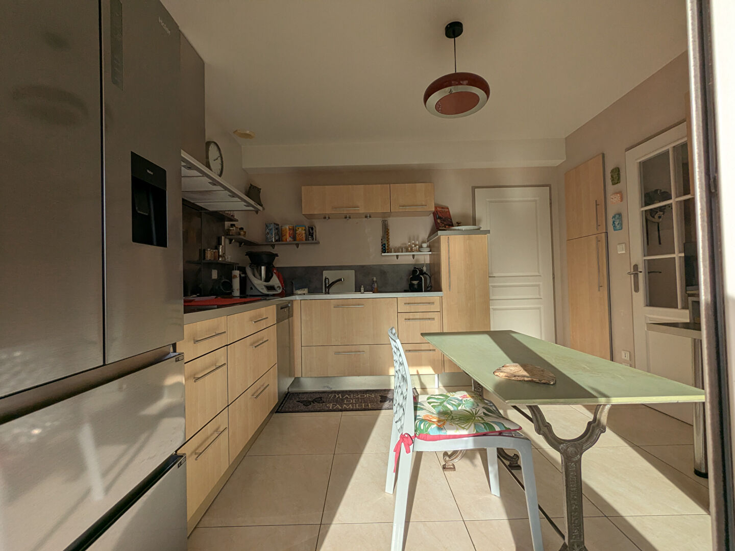 On trouvera sur le plain pied un vaste séjour avec de grandes baies vitrées, créant une continuité entre avec le jardin, une cuisine fonctionnelle, qui ravira les amateurs de convivialité.
