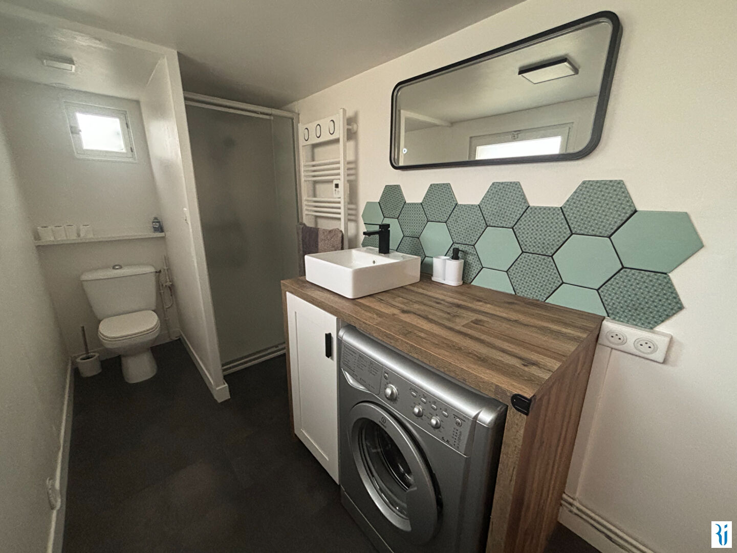 Au rez-de-chaussée, vous trouverez : Une cuisine aménagée et équipée, moderne et pratique, un salon cosy et une salle de douche avec WC.