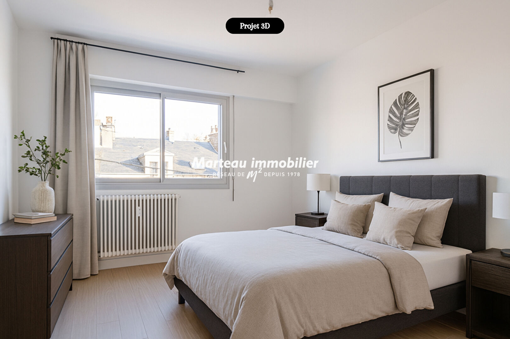 L'appartement offre une entrée, une belle pièce de vie avec un espace cuisine aménagée et équipée donnant une terrasse avec vue sur la Cathédrale.