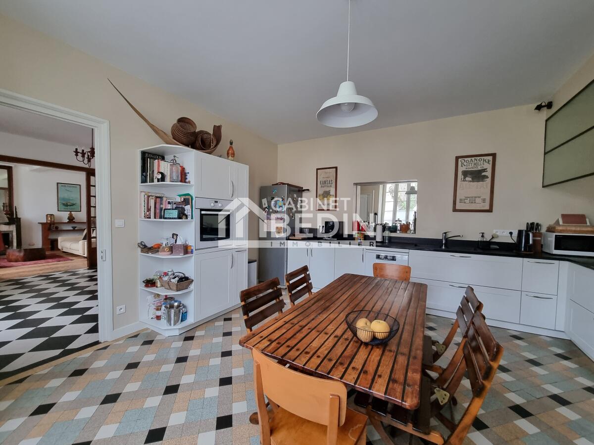 Le rez-de-chaussée dévoile des pièces de réception généreuses et lumineuses, ouvertes sur une cuisine aménagée et équipée, pensée pour favoriser la convivialité et les moments partagés en famille. Les volumes et la clarté des espaces confèrent à cette demeure élégance et chaleur.