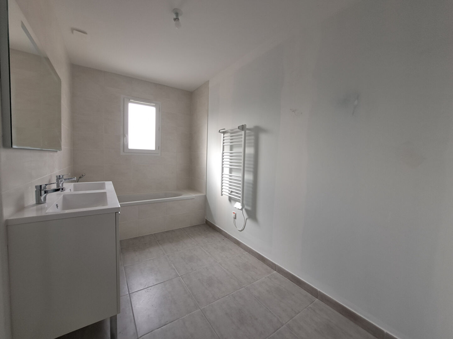 A l'étage, 3 chambres (sol à poser), une salle de bains avec baignoire et un WC.