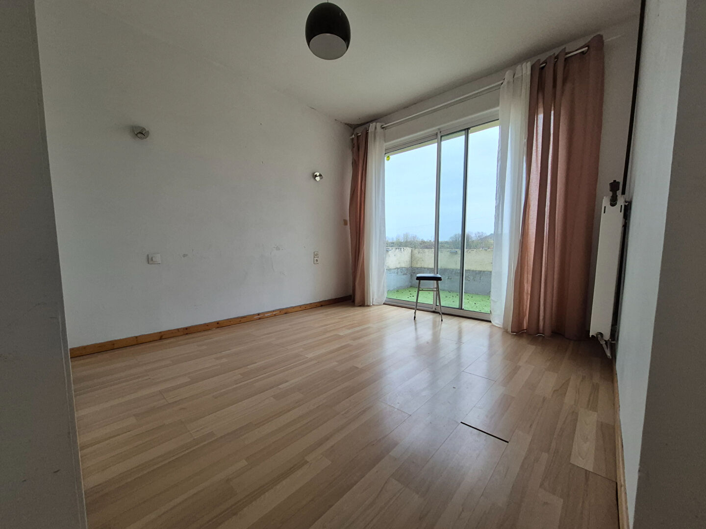 suivi d'un salon séjour, d'une cuisine équipée et WC.