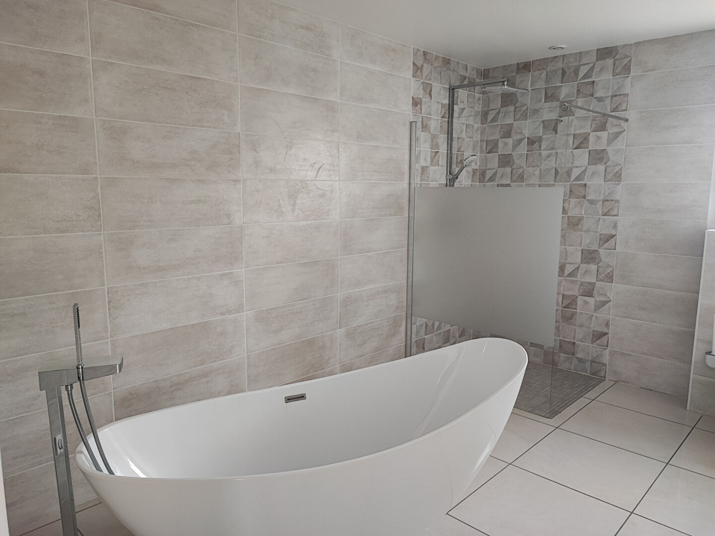 FLEURY LES AUBRAIS, maison individuelle construite en 2020 , comprenant : entrée, séjour, cuisine aménagée et équipée ouverte, salon (ou chambre), salle de bains et douche à l'italienne, wc, cellier. A l'étage : mezzanine, 2 chambres (13 m² chacune), 2 chambres avec dressing (21 m² chacune), salle de bains avec wc. Garage