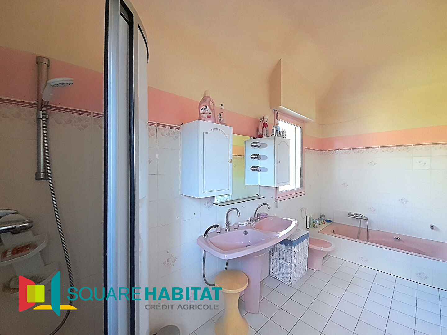 A l'étage, un palier dessert 3 chambres, une salle de bains, un W.C. séparé et un grenier.