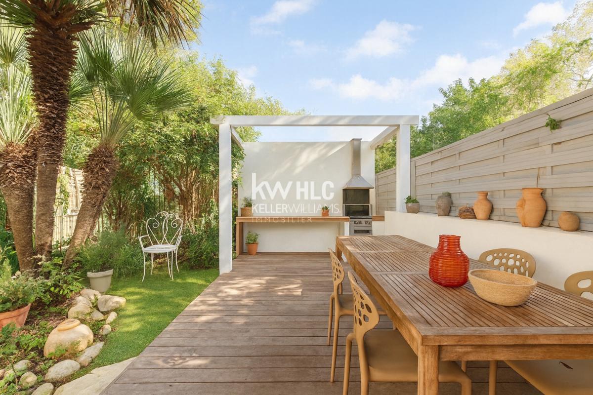 Cette maison d'époque de 5 pièces et 108 m² se compose d'un séjour salon lumineux, d'une grande cuisine ouverte entièrement équipée, d'une première chambre de plain-pied donnant sur un balcon, d'une salle de bain et d'une buanderie. A l'étage inférieur, deux chambres supplémentaires s'ajoutent, accompagnées d'un bureau, d'une seconde salle de bain et d'une pièce pouvant faire office de dressing, idéale pour personnaliser votre espace de vie. À l'extérieur, profitez d'un jardin arboré, d'un pool house pour savourer vos moments en plein air, d'un grand atelier pour vos rangements et d'un vaste grenier offrant encore des possibilités. La maison dispose également de quatre places de parking privatives.