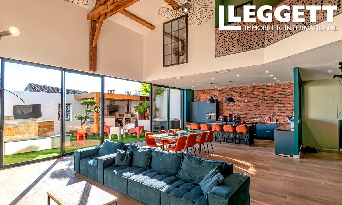 A41177CYV11 - Dans une rue calme à sens unique de Coursan, cette ancienne remise viticole a été transformée en une demeure contemporaine de 350 m² alliant charme industriel et confort moderne. Entièrement rénovée entre 2021 et 2024, elle offre un vaste séjour de 75 m² ouvrant sur une terrasse de 100 m² avec piscine à débordement chauffée au sel, jacuzzi et cuisine d'été. Cinq chambres dont une suite parentale, cave à vin et garage de 150 m² complètent ce bien rare. Coursan, village vivant avec toutes commodités, se trouve à 10 min de Narbonne et 25 min des plages. Idéale pour les amateurs de design, les familles, le télétravail ou les couples aimant recevoir -- une résidence principale ou secondaire d'exception dans le Sud de la France.