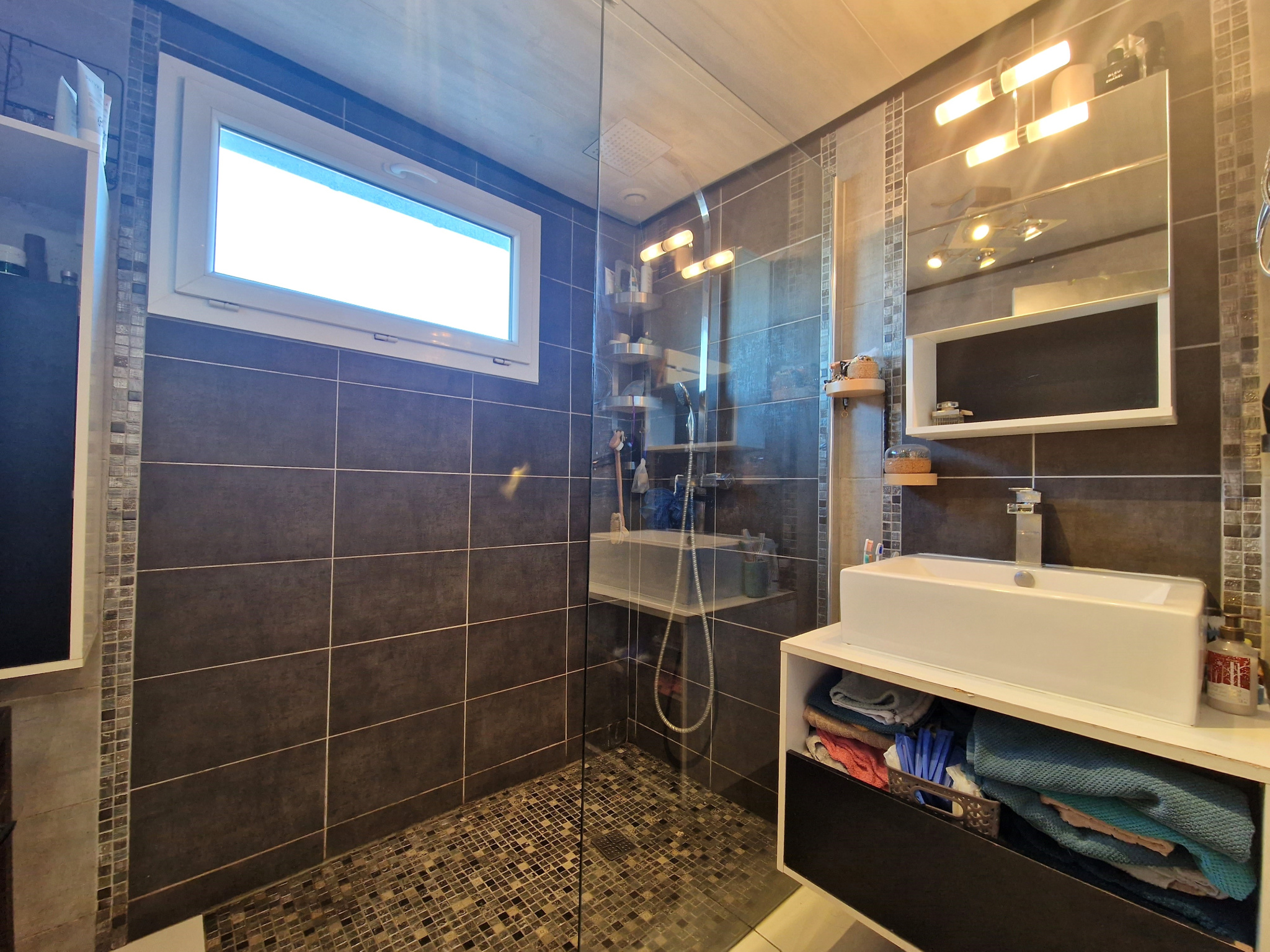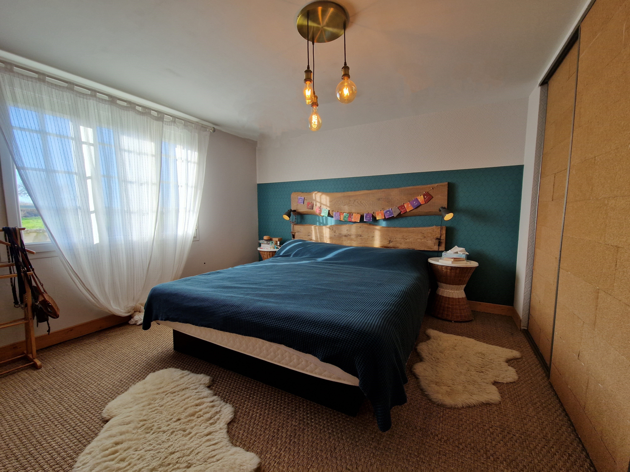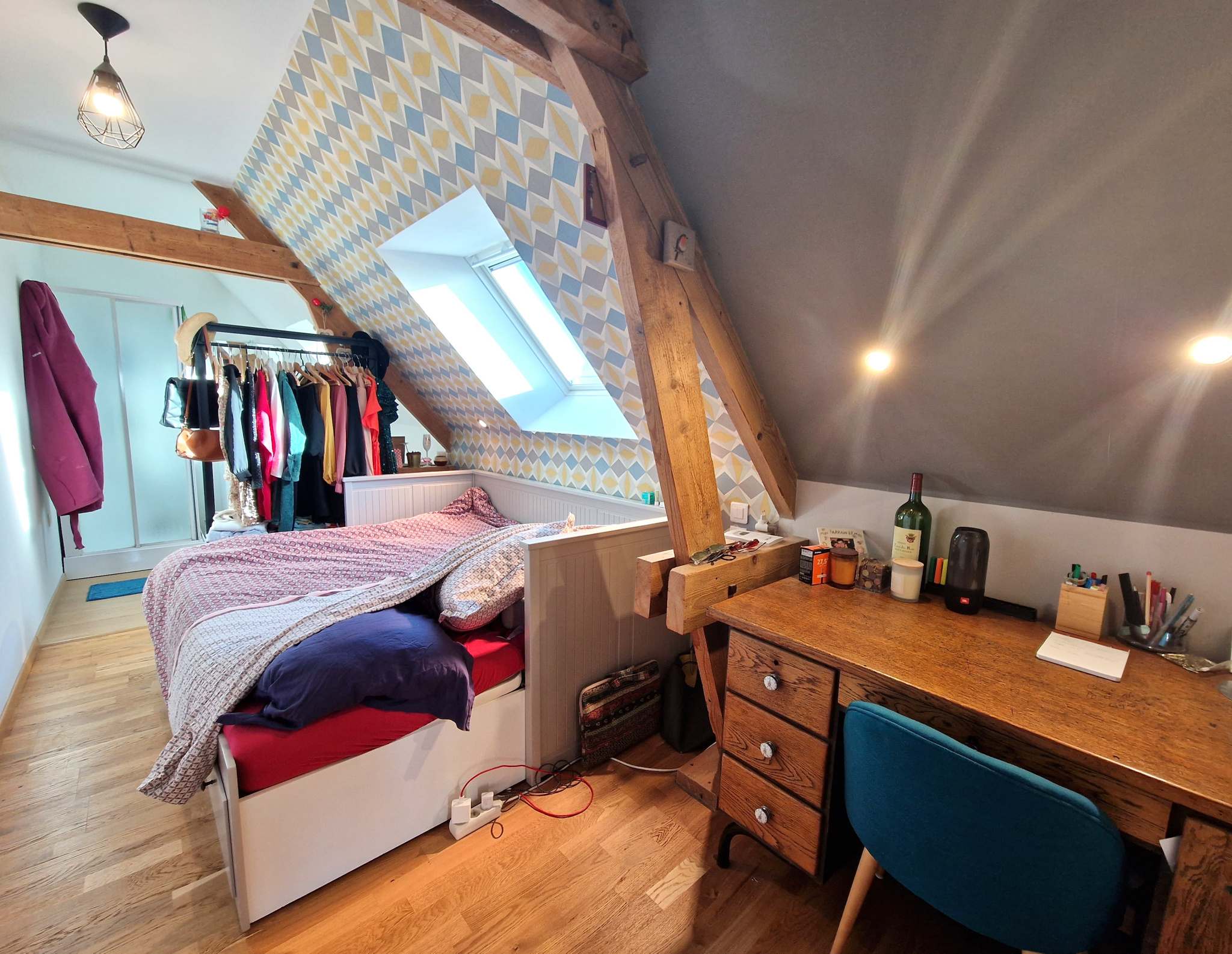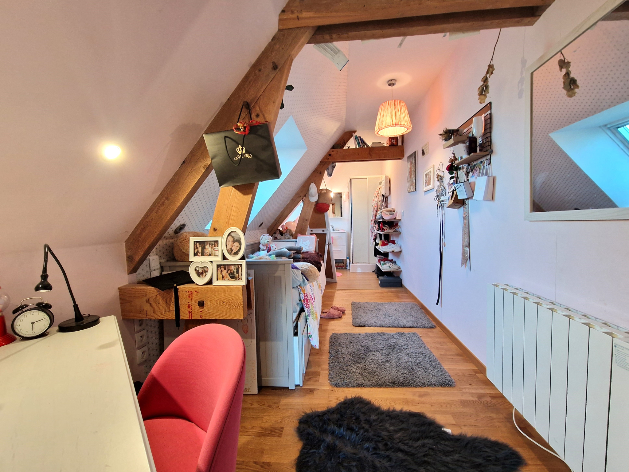 L'étage s'ouvre sur un palier desservant deux chambres, chacune disposant de sa propre salle d'eau.