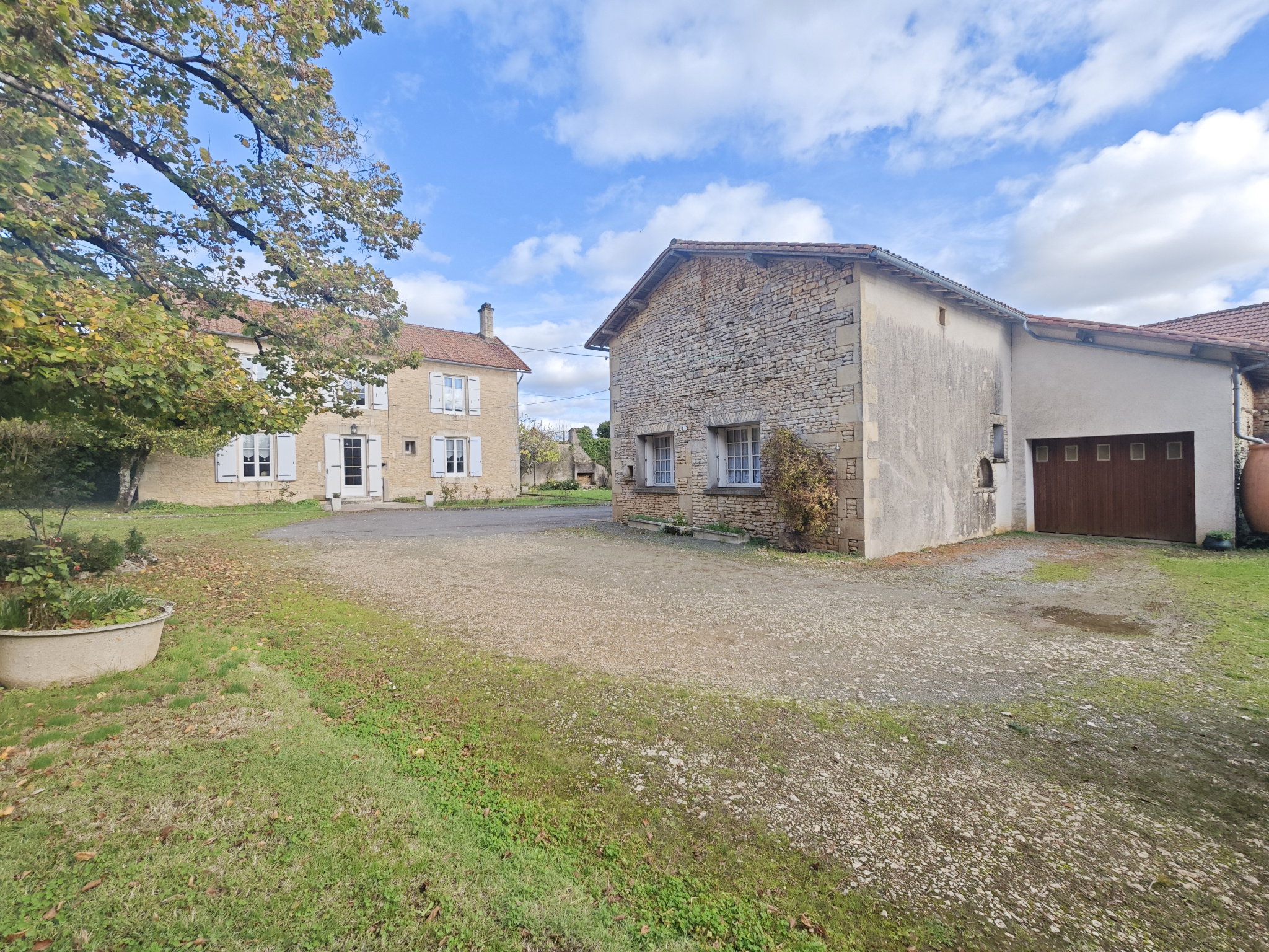 ROM. PICTAVE immo votre agence immobilière à LEZAY, est heureuse de vous présenter en EXCLUSIVITÉ cette maison construite en 1920. Elle comprend une entrée, une cuisine ouverte sur une terrasse, un séjour agrémenté d'une cheminée, une salle de bains et un WC. L'étage accueille trois chambres, dont une spacieuse de 25 m2. Un studio indépendant, une grange offrant un beau potentiel d'aménagement et un garage viennent compléter l'ensemble. La maison est équipée de menuiseries PVC double vitrage. Le jardin, richement arboré -- tilleul majestueux, figuier, marronnier, noyer et conifères -- crée un environnement verdoyant et apaisant. Implantée dans un hameau situé entre VALENCE-EN-POITOU/COUHÉ (à 7 minutes) et ROM, la propriété bénéficie d'un accès rapide aux commodités locales : musée, école et commerce multiservices (bar, restaurant, épicerie).