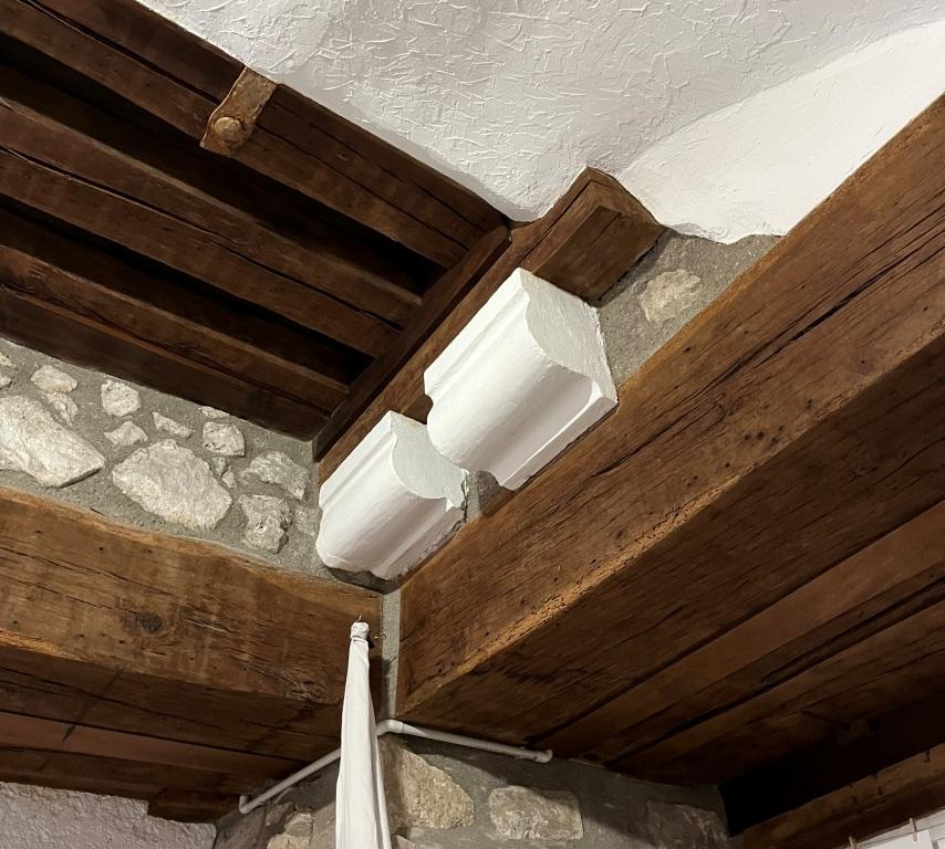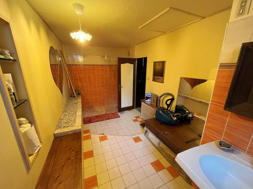 Le rez-de-chaussée se compose de deux portes d'entrée. La première dessert une pièce d'exposition de 18m2, riche en détails sculptés. L'autre entrée, dotée d'un bel escalier en chêne du 17e siècle avec marches revêtues de carreaux terre cuite vernissés, dessert un couloir séparant une superbe pièce de 32 m2avec sol en calcaire ainsi qu'une salle d'eau avec wc. (Les 3 pièces principales communiquent entre elles).