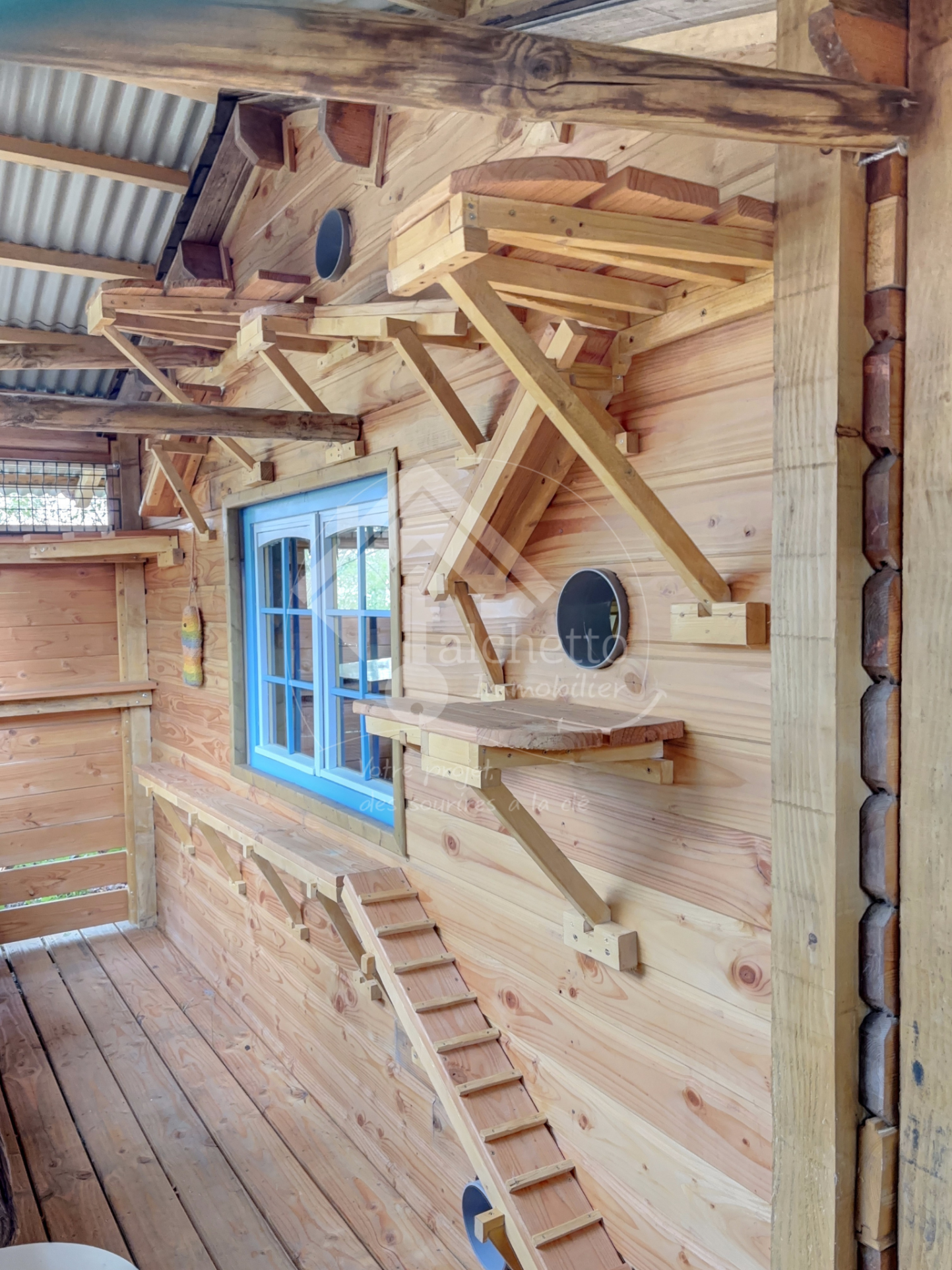 Coté félins, 5 chalets entiérement isolés, adaptés et amménagés avec goût et confort pouvant accueillir environ 30 chats.