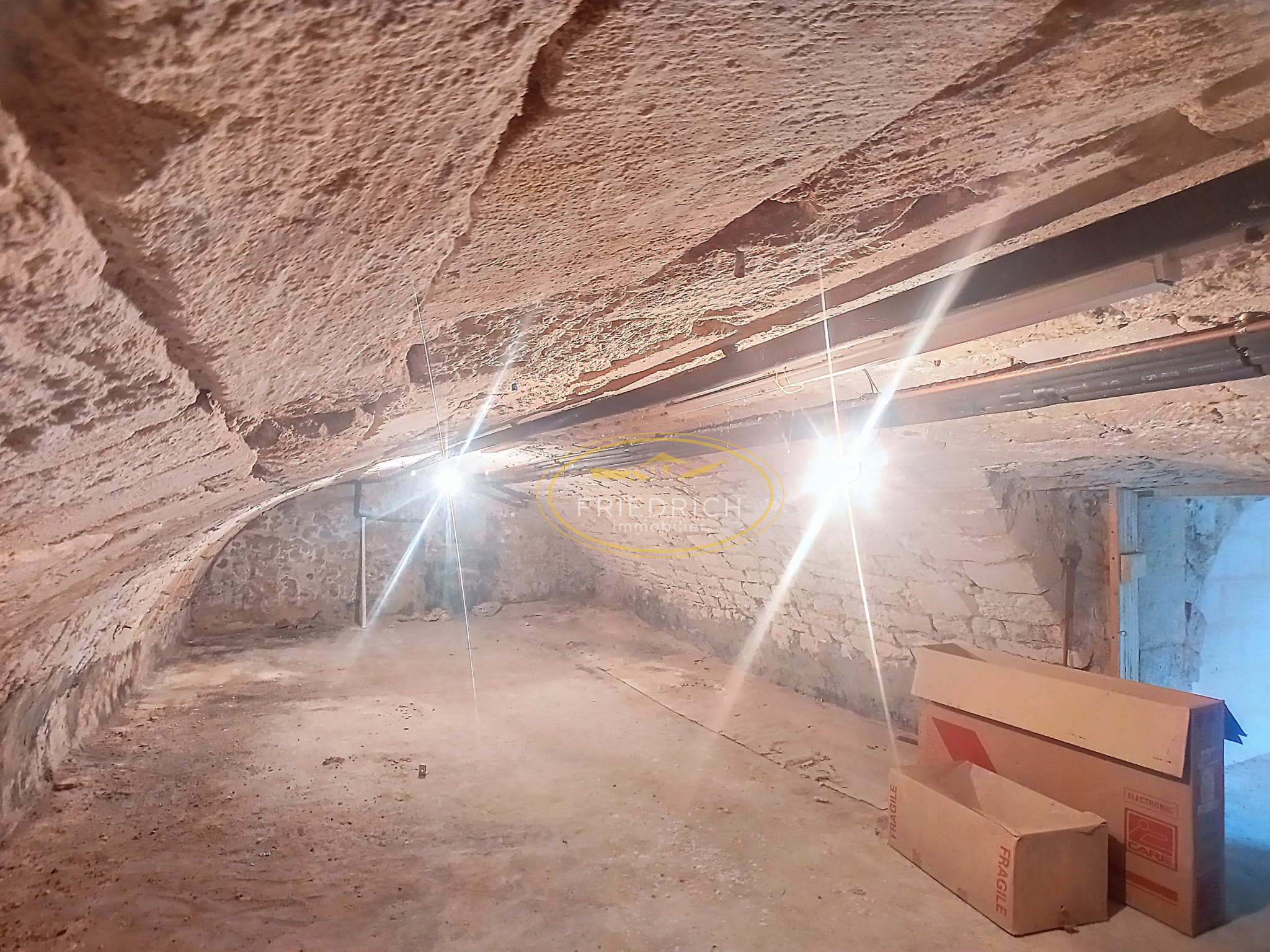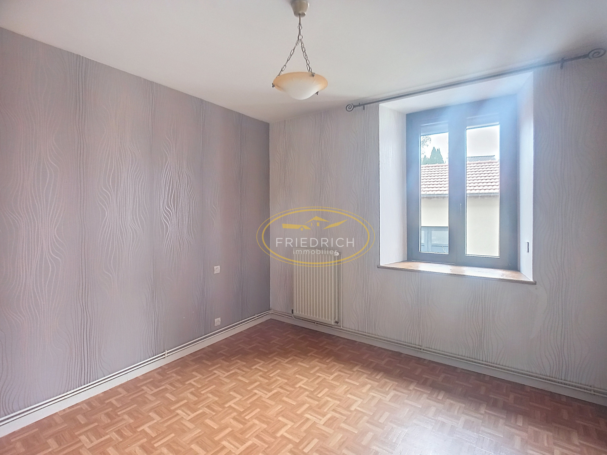 Au rez-de-chaussée : Appartement type F4 de 90m2 loué 590EUR/mois à partir du 01/12/2025. Il est composé d'une cuisine équipée, séjour, trois chambres et une salle d'eau avec douche à l'italienne et WC. Le bien est chauffé par un système de chauffage centrale au gaz de ville de 2019.
