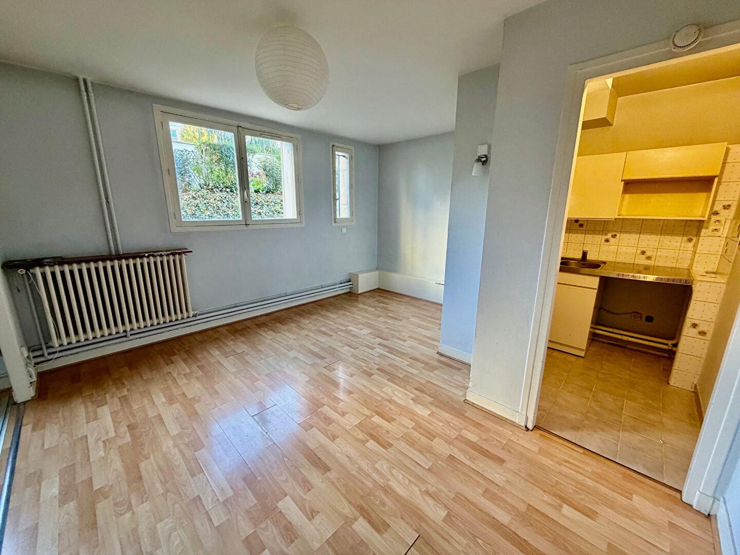 Ce charmant appartement 2 pièces de 34,42 m², situé en rez-de-chaussée sur cour, offre une vue dégagée sur la verdure, garantissant calme et luminosité grâce à ses nombreuses ouvertures vitrées.