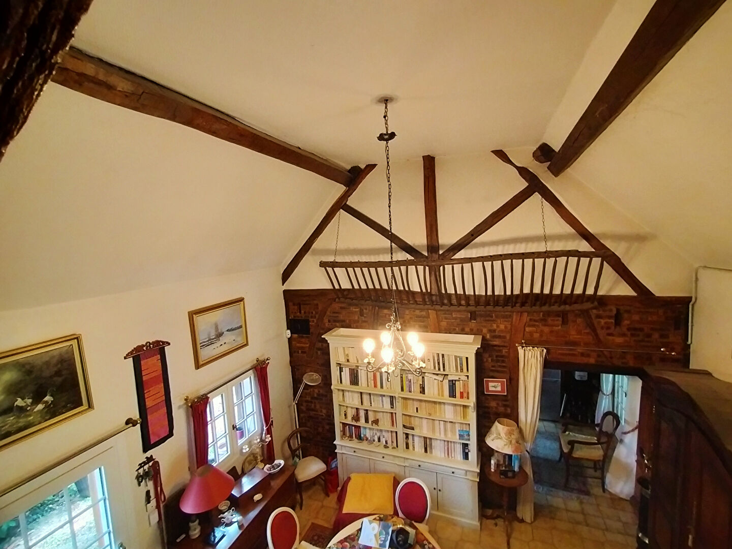 beaucoup de cachet poutres apparentes dans toutes les pièces, grande hauteur sous plafond ,mezzanine. Taxe foncière 835Euro