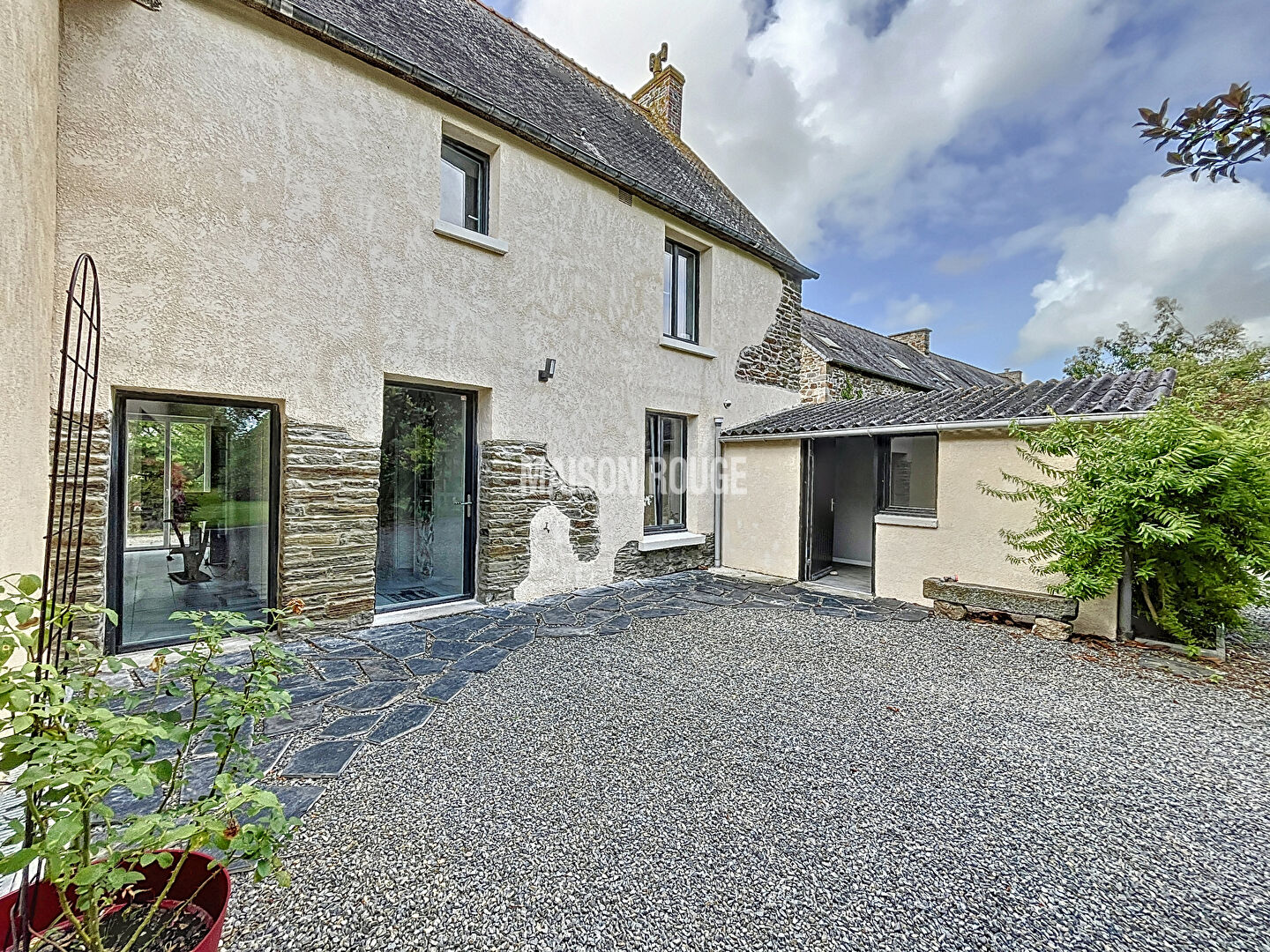Sur 2000 m² env. de terrain clos et arboré, cette maison en pierre, rénovée se compose d'une entrée avec placards, cuisine équipée-aménagée, un salon-séjour avec poêle à granulés, trois belles chambres dont une avec salle d'eau privative, bureau et salle de bains. Lingerie, garage de 50 m², poulailler et grenier aménageable.