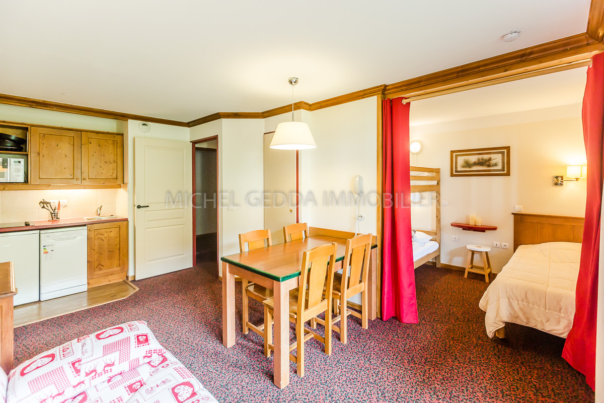 En exclusivité ! LES COCHES domaine Paradiski , studio cabine exposé sud, 28.68 m² loi Carrez situé en rez de jardin, dans une résidence récente avec ascenseur. Il comprend : entrée avec salle de bains +wc, un coin cuisine ouvert sur le séjour et une cabine avec fenêtre. Il est vendu meublé et équipé pour 4/5 personnes avec jouissance d'un casier à skis. Copropriété constituée de 73 lots.Charges courantes annuelles 1700 Euros. Taxe foncière 2023 : 245 Euros. Prix 115 000 Euros honoraires d'Agence inclus 4,55 % TTC (hors honoraires 110 000 ?). - FN_1763270477