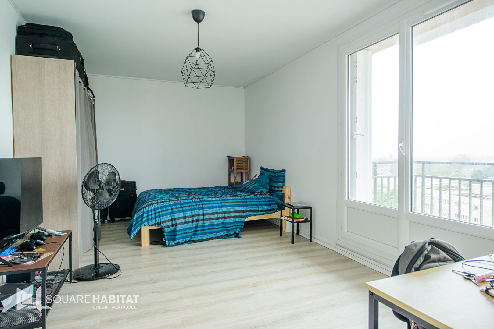 Il se compose d'un séjour/chambre ouvrant sur un premier balcon, d'une cuisine indépendante séparée avec accès à un second balcon, de deux chambres, , d'une salle de bains et de WC séparés.