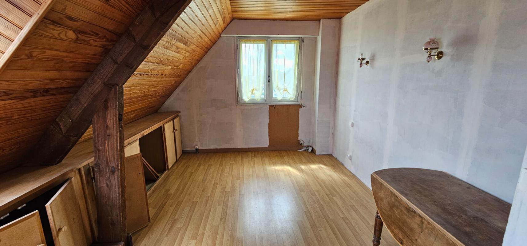 La maison se compose d'une entrée, une cuisine, un salon séjour , un couloir, une salle de douche, un wc et deux chambres. A l'étage un palier dessert trois chambres, un bureau, une salle d'eau, un grenier aménageable. La maison est édifiée sur un sous sol total. La maison reliée au réseau d'assainissement collectif, est habitable de suite mais demande des travaux d'électricité, d'ouvertures, de chauffage et d'isolation. La maison est implantée sur un terrain constructible de 1 400 m² avec possibilité de détacher une partie du terrain.