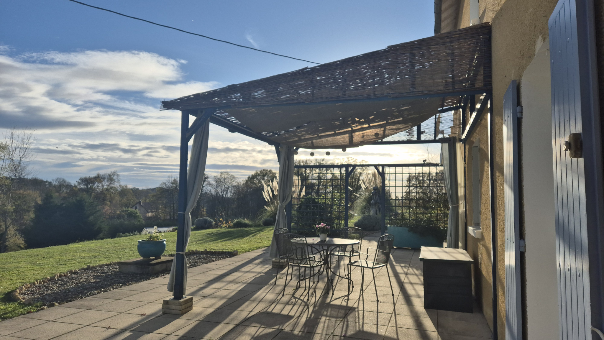 Nichée au coeur d'une campagne paisible à quelques minutes de Sarlat, cette maison lumineuse et soigneusement rénovée semble posée entre ciel et verdure. Son grand jardin, où les arbres veillent avec douceur, offre un cadre de vie inspirant et serein, rythmé par de belles vues dégagées qui changent au fil des saisons.Un lieu où l'on ressent immédiatement une atmosphère d'harmonie et de bien-être. La maison bénéficie également de panneaux solaires installés sur le toit, apportant un revenu appréciable et participant à une gestion énergétique responsable. ESPACE DE VIE PRINCIPAL de plain pied sur un niveau Le quotidien s'organise autour d'une cuisine accueillante et d'un salon/salle à manger chaleureux prolongé par une magnifique terrasse couverte : un véritable trait d'union entre l'intérieur et le jardin, idéal pour les repas d'été et les soirées tranquilles.,Deux chambres , une grande salle de bain et des toilettes séparées complètent ce niveau dédié au confort. À L'ÉTAGE Un grand palier baigné de lumière, utilisé comme bureau, dessert deux chambres pleines de charme, parfaites pour accueillir famille, amis ou espaces créatifs. LE GÎTE UN UNIVERS À PART, OUVERT SUR LE JARDIN Accessible par une entrée totalement indépendante comme par la maison, le gîte offre un vaste espace de vie, réunissant cuisine, salon et salle à manger, avec accès direct à une terrasse pavée tournée vers le jardin.Il comprend deux chambres, avec salle de bain attenante .