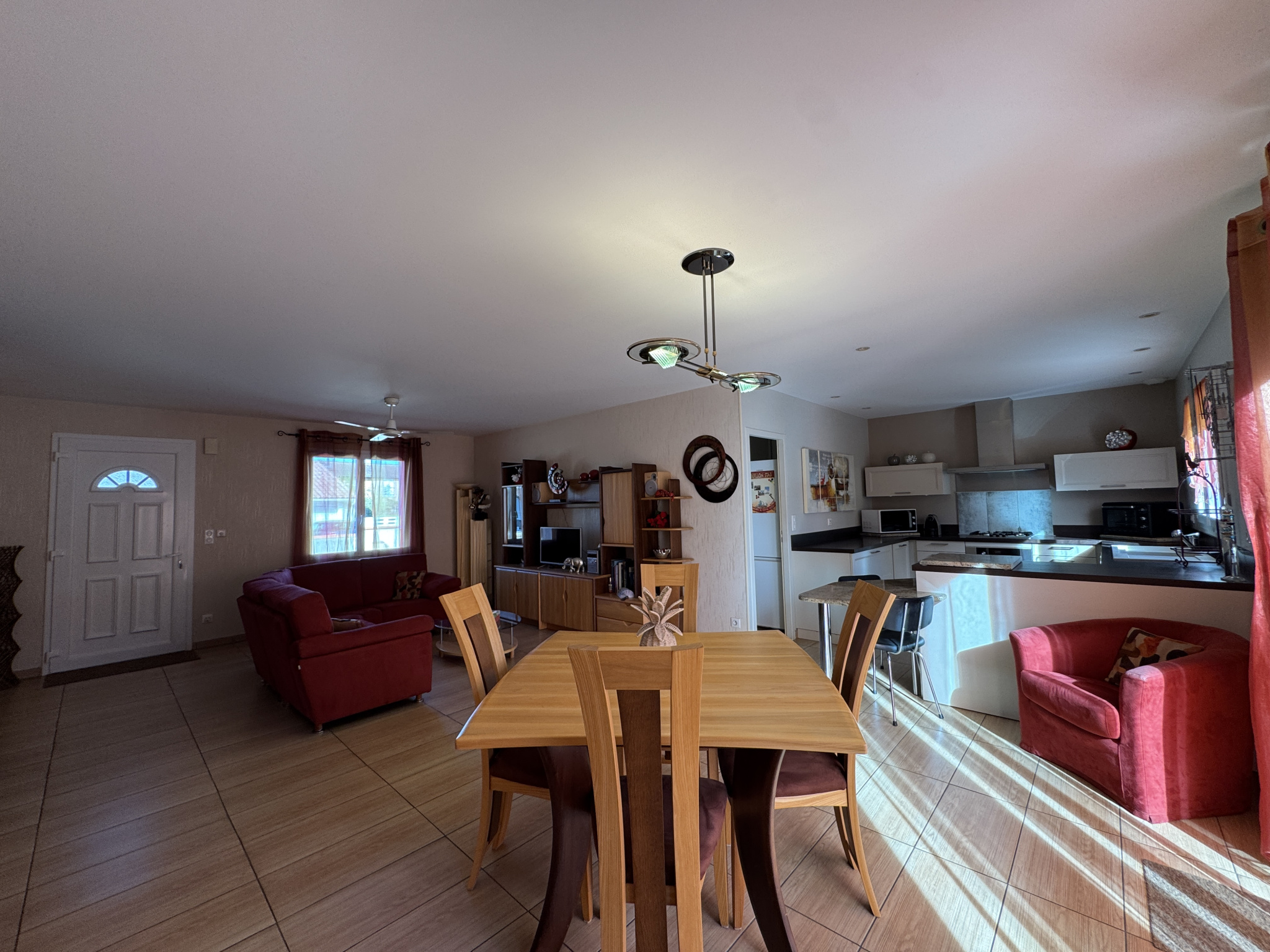 Dès l'entrée, l'espace de vie d'environ 50 m2 impressionne par sa luminosité et son ouverture sur le jardin. Le séjour de 37 m2, chaleureux et spacieux, se prolonge par une cuisine américaine conviviale, idéale pour partager des moments en famille ou entre amis.