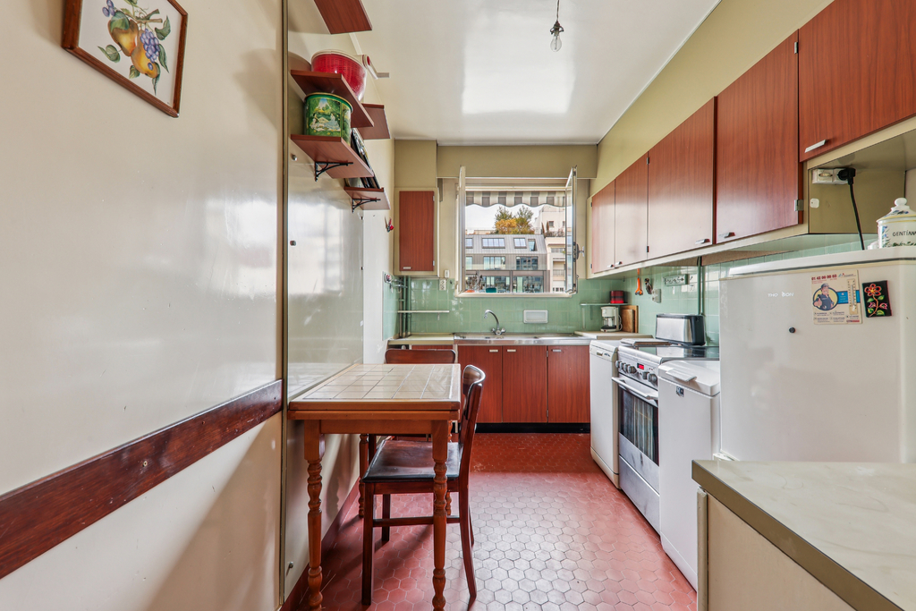 Le séjour et la salle à manger, exposés plein sud, s'ouvrent sur un balcon avec vue dégagée. La cuisine indépendante peut aisément être intégrée à la pièce de vie pour un espace plus contemporain.