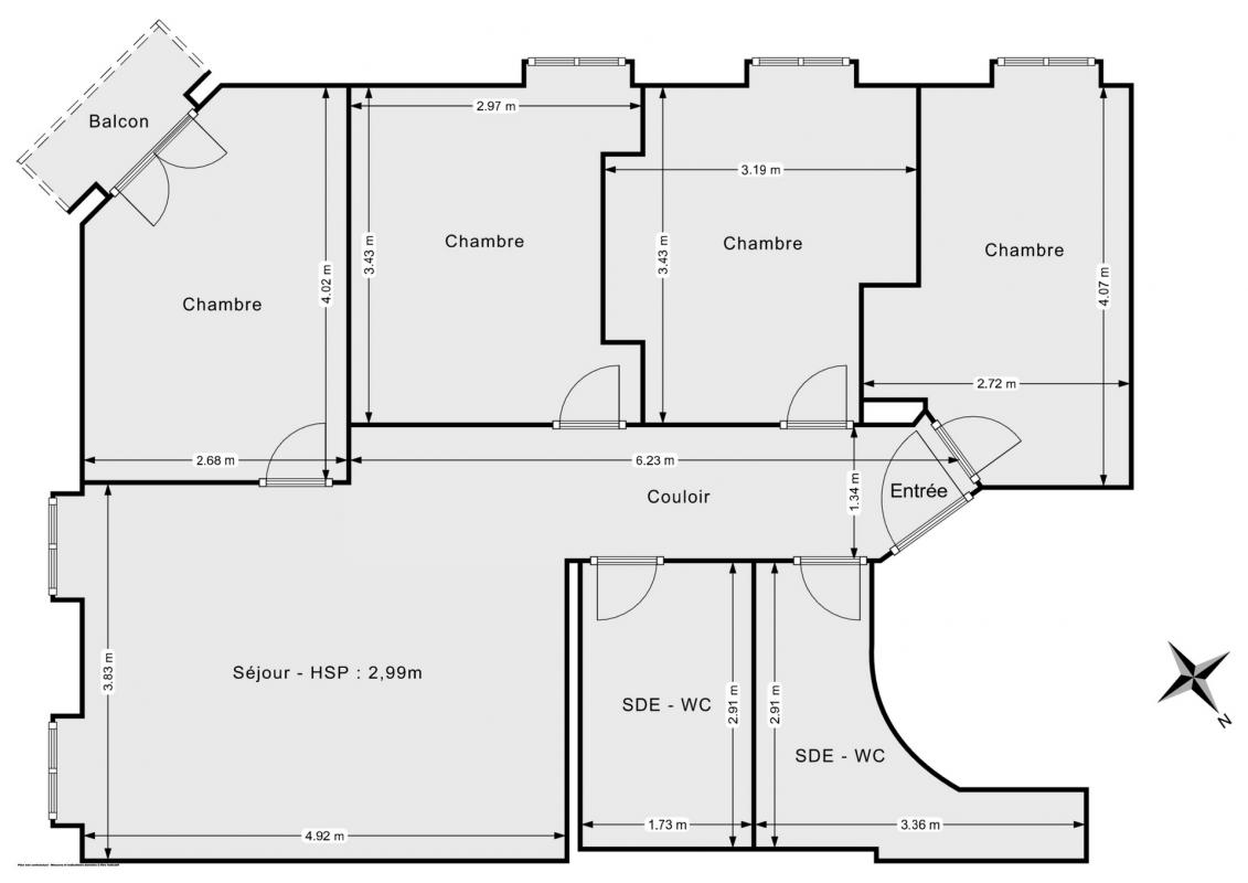 L'appartement se compose d'une entrée accueillante de 5 m² desservant un séjour de 20 m² baigné de lumière naturelle, parfait pour vos moments de convivialité. L'agréable cuisine américaine de 4 m² permet de partager les repas en famille. Côté nuit, quatre chambres (9,55 9,25 9,45 et 9 m²) constituent un espace idéal pour accueillir enfants, bureau ou invité, ainsi que deux salles de bains fonctionnelles de 5 m² chacune, offrant confort et praticité. L'agencement optimise chaque mètre carré, garantissant une belle distribution des espaces.