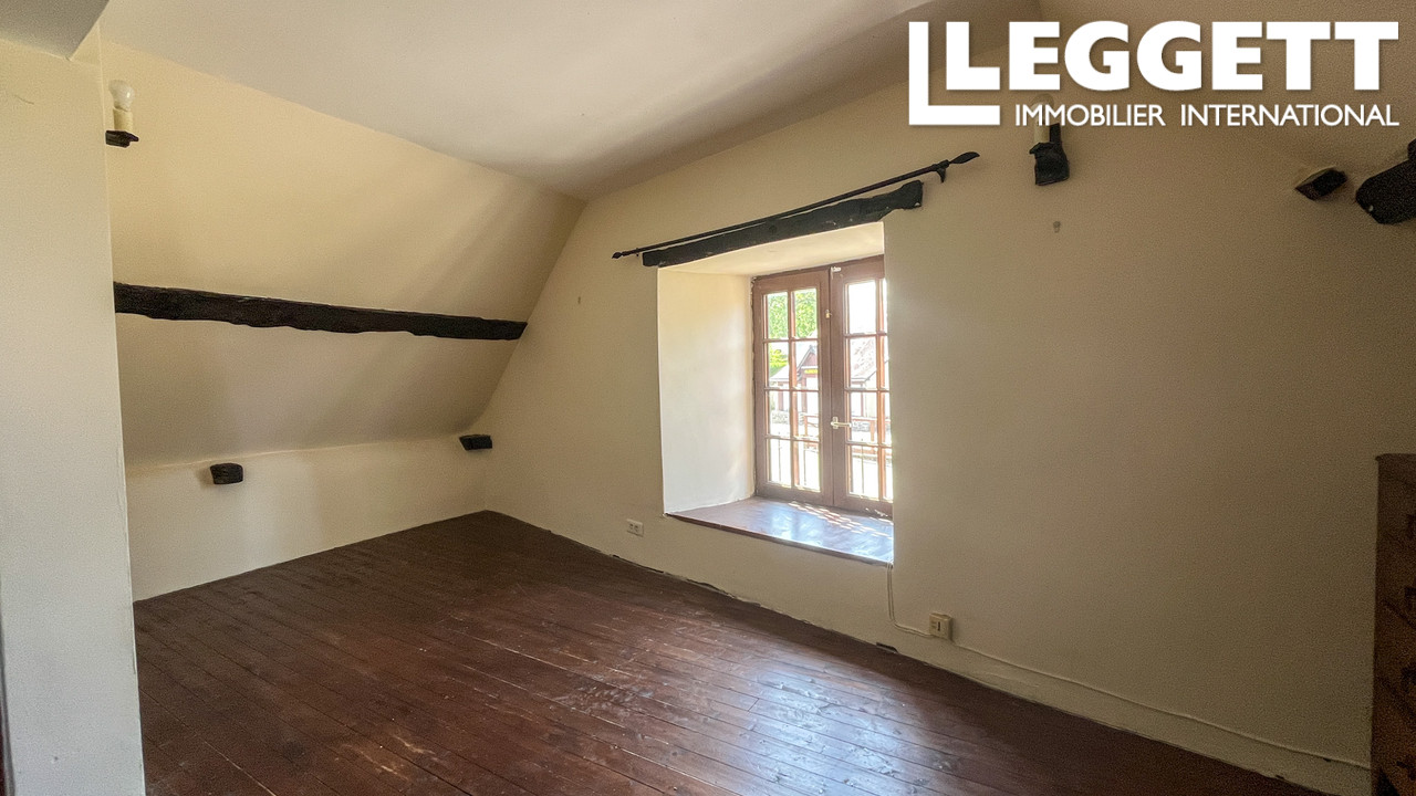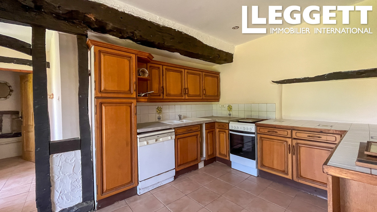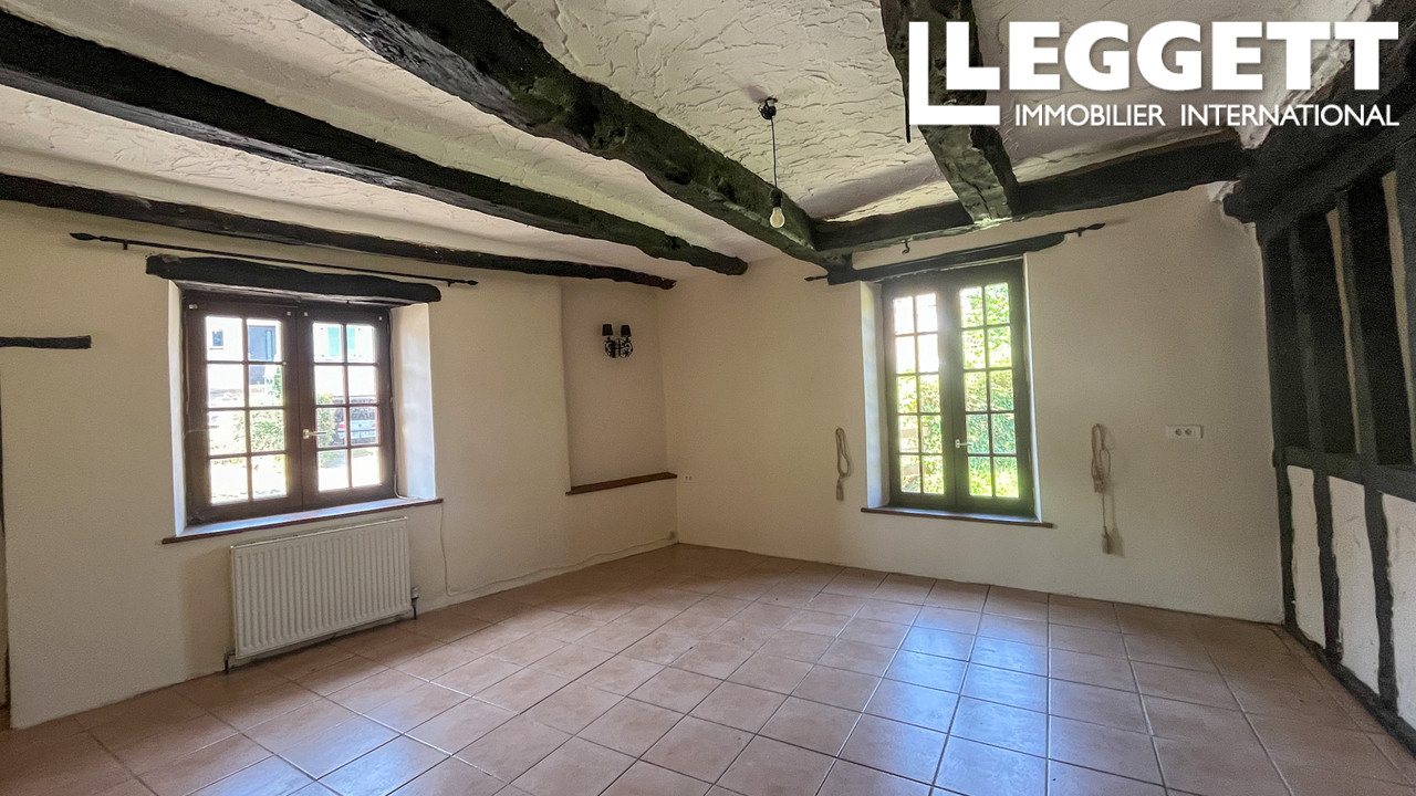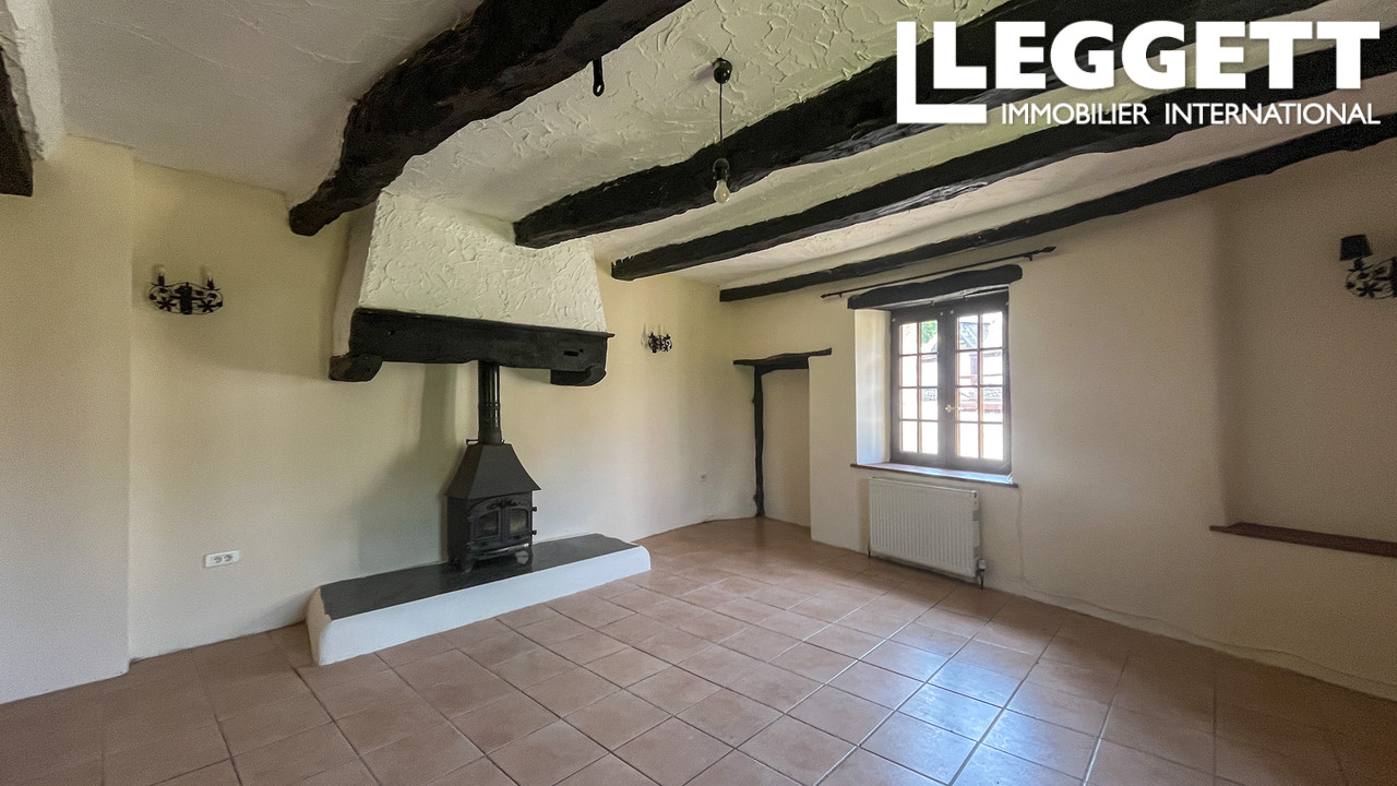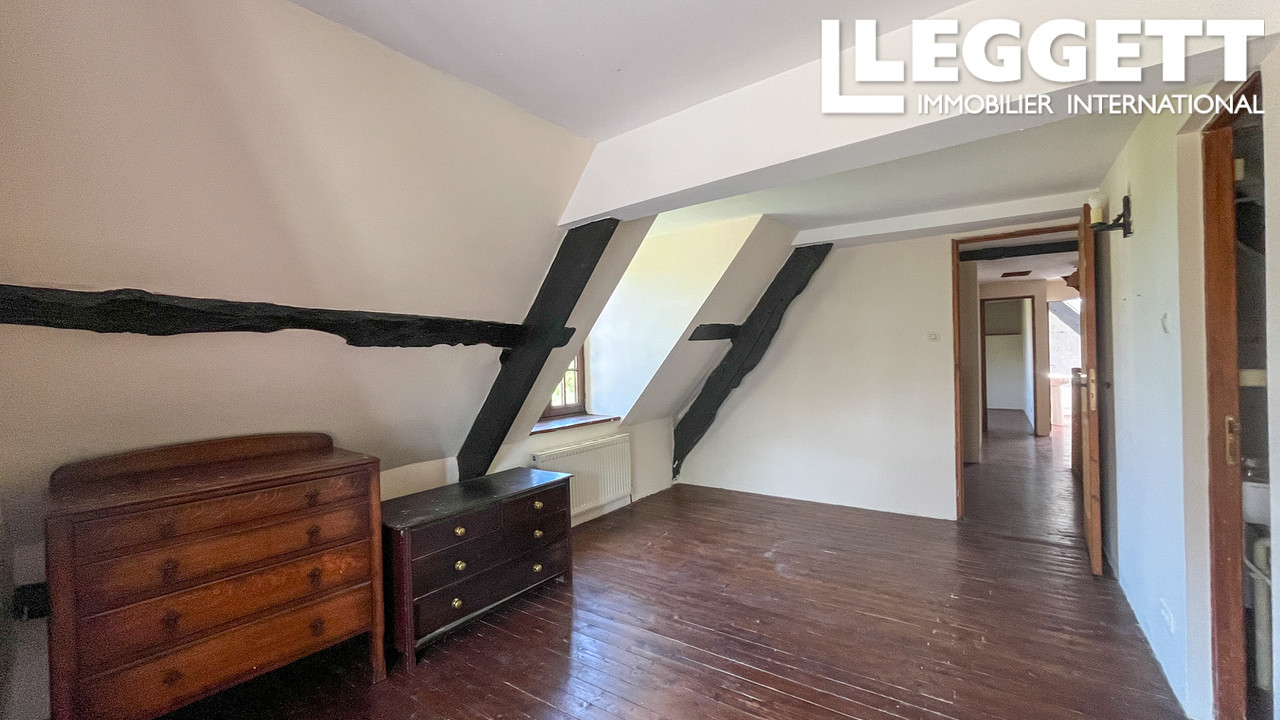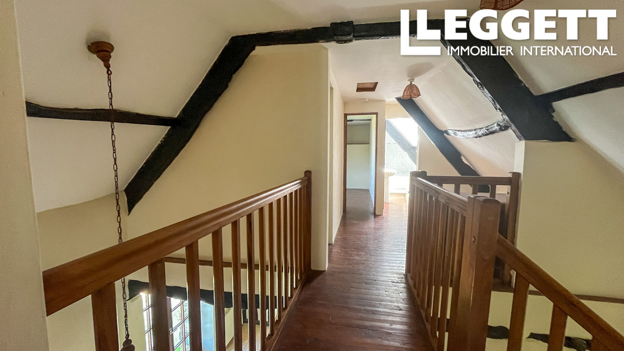 Le rez-de-chaussée comprend un WC, un cellier, une cuisine familiale avec salle à manger et un salon avec poêle à bois et poutres apparentes, créant un espace cosy et accueillant. À l'étage : suite parentale avec salle de bain, deux chambres supplémentaires et salle de bain familiale, avec parquet en bois.