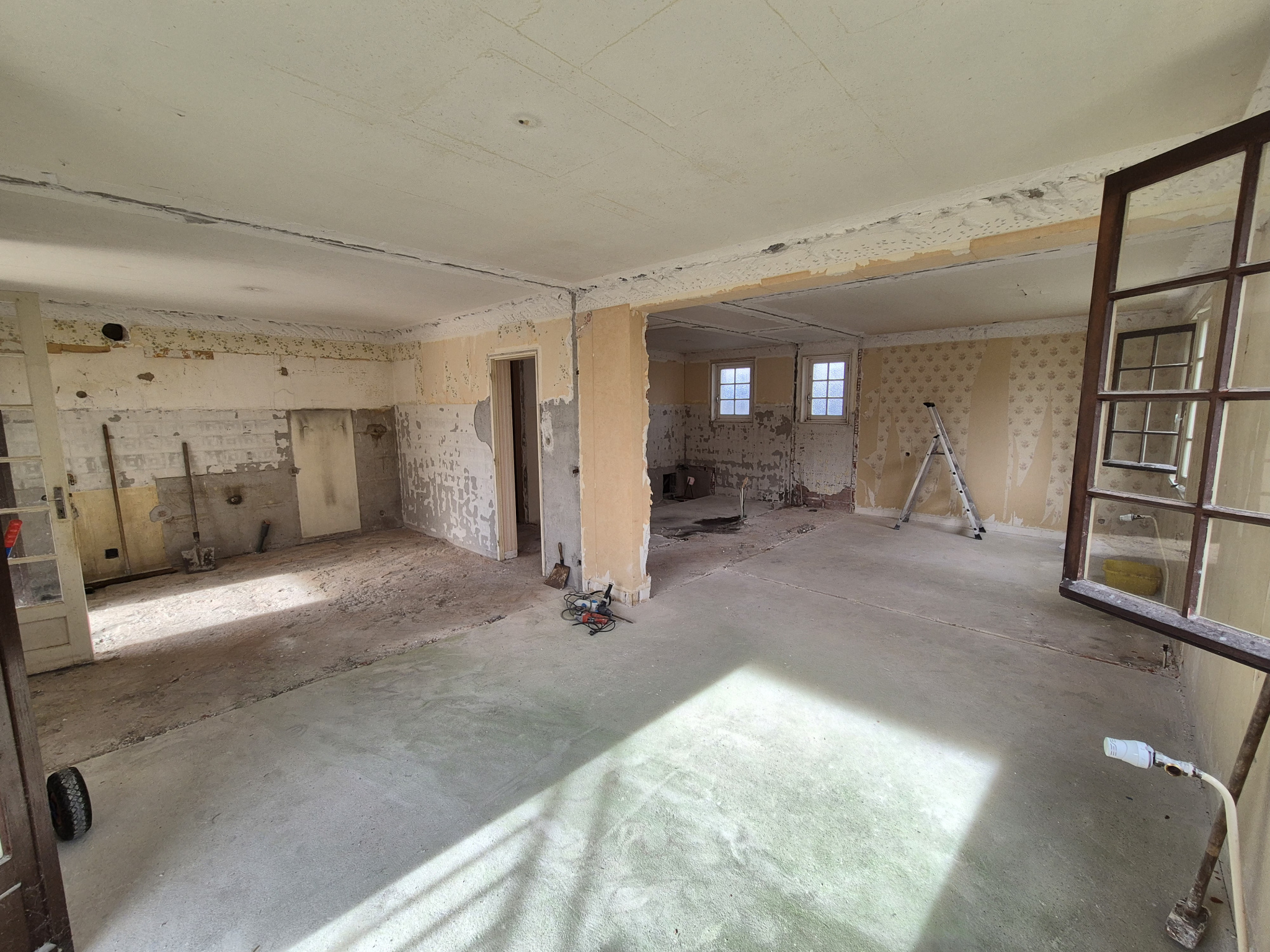 Le rez de chaussée est, actuellement, en l'état de plateau de 55m2 offrant plusieurs solutions d'aménagements : une pièce de vie ouverte, communicante avec les deux autres étages avec vue sur le jardin, un appartement indépendant. ou un très grand garage.