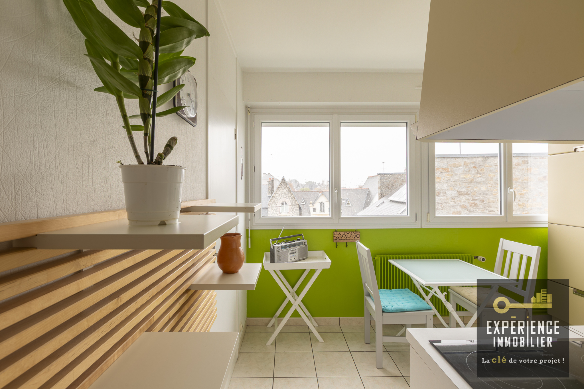Bretagne - Côtes d'Armor - SAINT-BRIEUC. Votre agence de proximité Expérience Immobilier a le plaisir de vous présenter cette nouvelle exclusivité sur la commune de SAINT-BRIEUC, à 1 km de la gare. Situé au 3ème et dernier étage de la copropriété, cet appartement de Type 3 traversant est très lumineux. D'une surface habitable de 61 m2, il se déploie de la façon suivante : une entrée, une cuisine dinatoire séparée aménagée et équipée, une pièce de vie, un couloir mène à l'espace nuit composé de 2 chambres avec chacune son accès à un balcon, un dressing, une salle d'eau, wc séparé, placards de rangement. Ses plus : une loggia, une cave, un garage fermé.