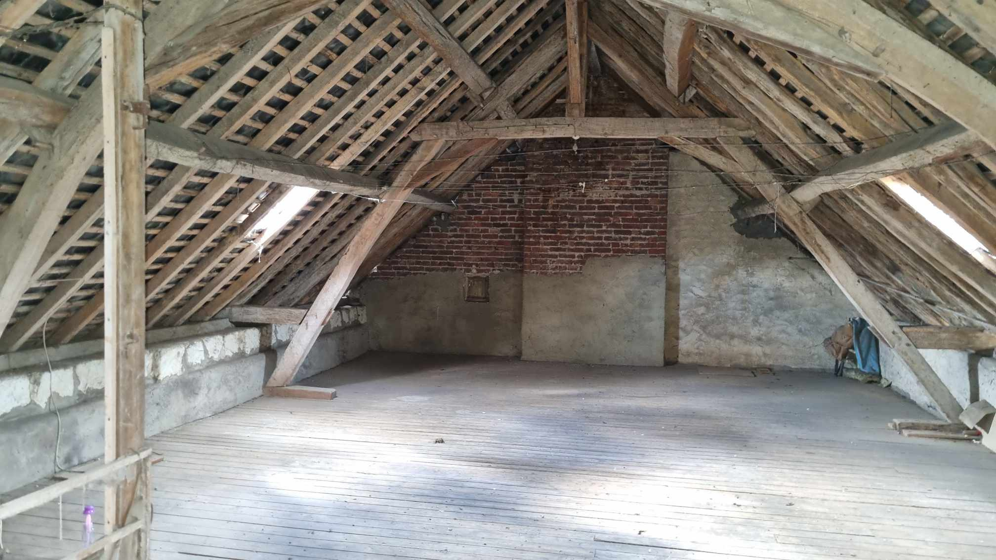 Elle se compose au rez-de-chaussée d'un séjour, d'une cuisine, d'une grande pièce de 40m2, ainsi que d'une salle d'eau et d'un WC. À l'étage, vous trouverez deux chambres, un bureau, et une spacieuse pièce d'environ 40 m2 Un grenier couvre l'ensemble, offrant un espace de stockage supplémentaire ou une possibilité d'aménagement.