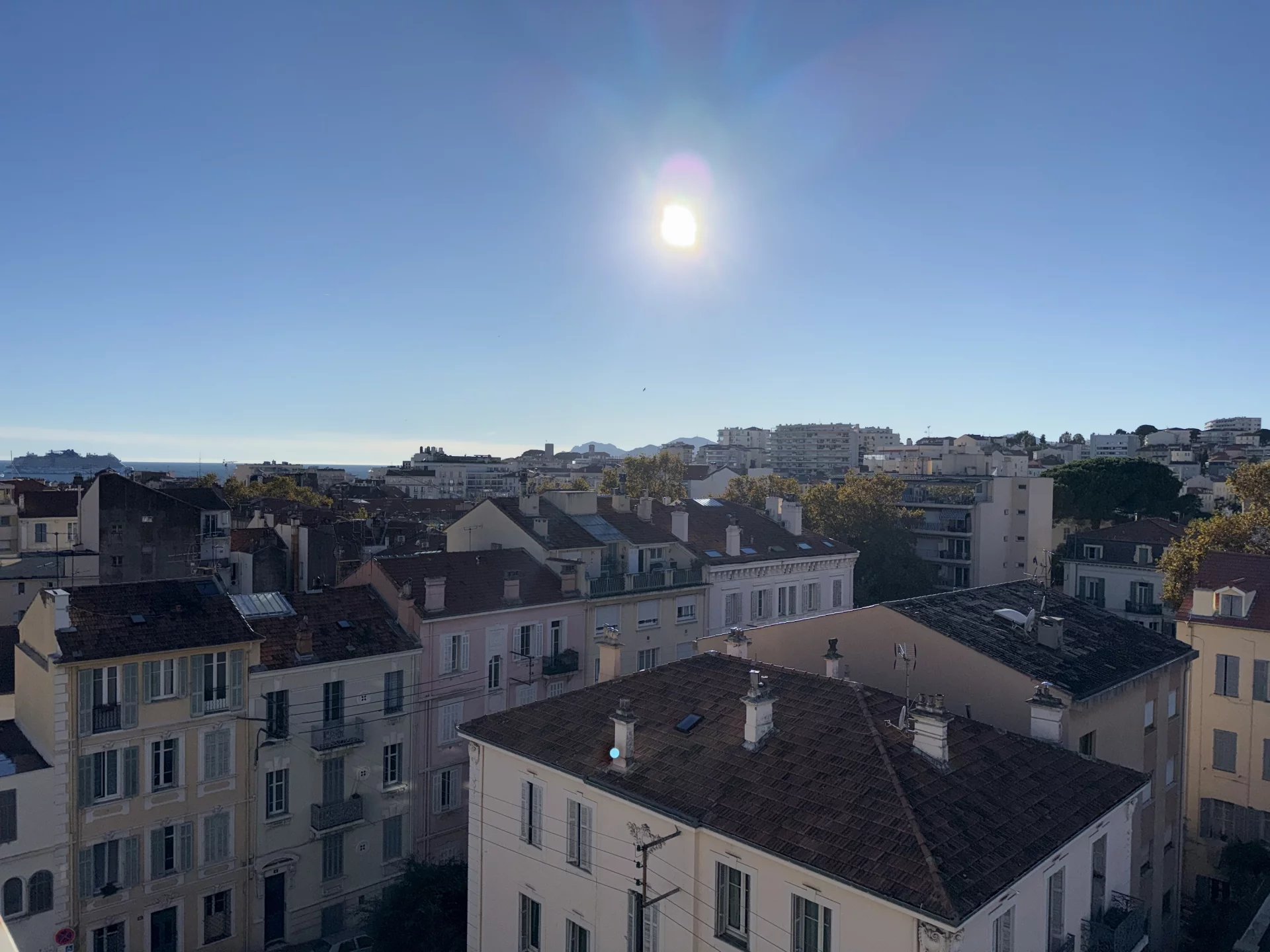 Cannes Gallieni, proche de Palais de Justice et de centre ville. Appartement 3 pièces, dans une résidence sécurisée, au 6ème étage, traversant O/E, avec la vue mer latérale.