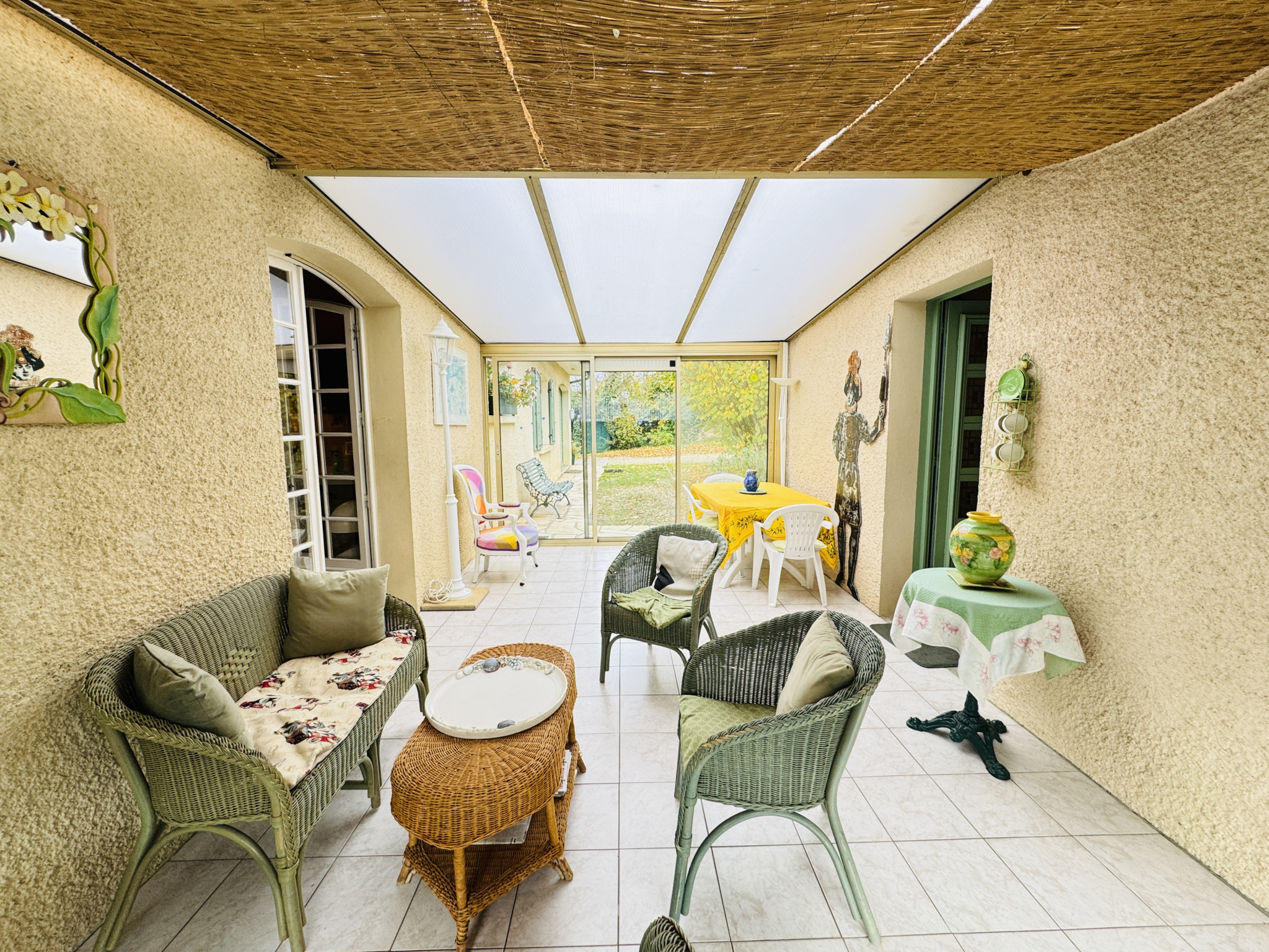 A proximité du bourg de Migné Auxances - Maison de plain-pied comprenant entée, salon, cuisine ouverte sur salle à manger, trois chambres, salle d'eau, wc. Contigu à la maison dont la jonction se fait par une véranda, maison d'amis comprenant pièce de vie, petite cuisine, chambre, salle d'eau et wc.